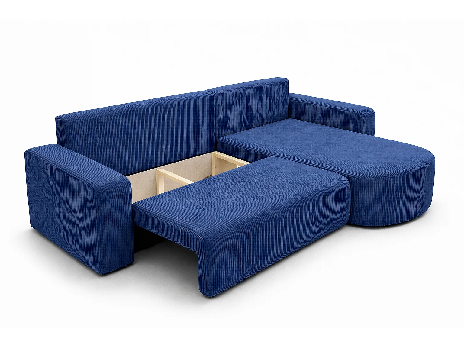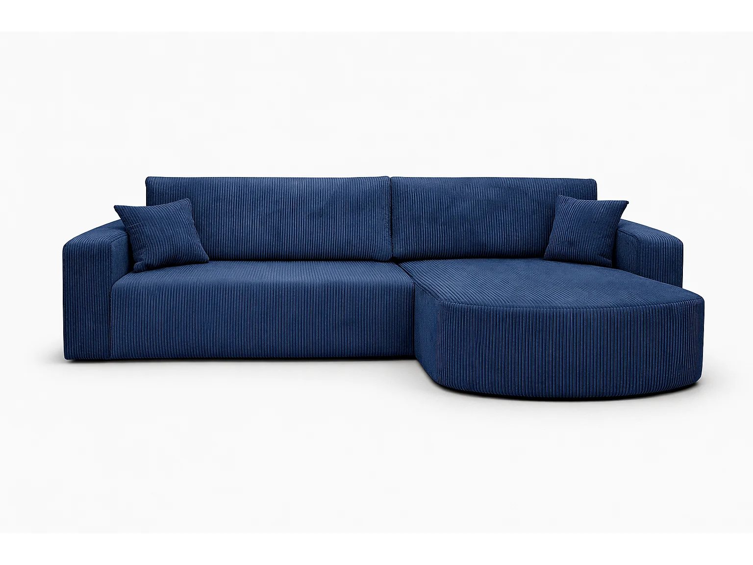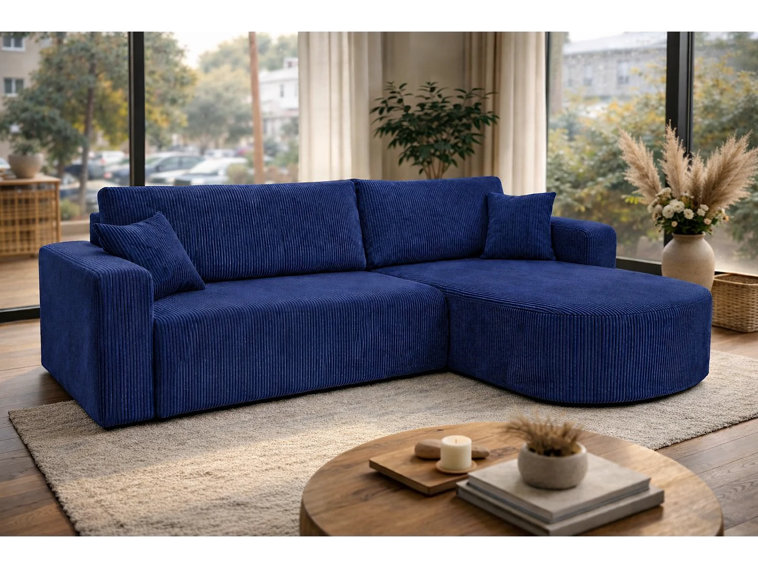 Canapé d'Angle réversible convertible avec fonction de couchage coffre universel en velours côtelé gris Kimo XL