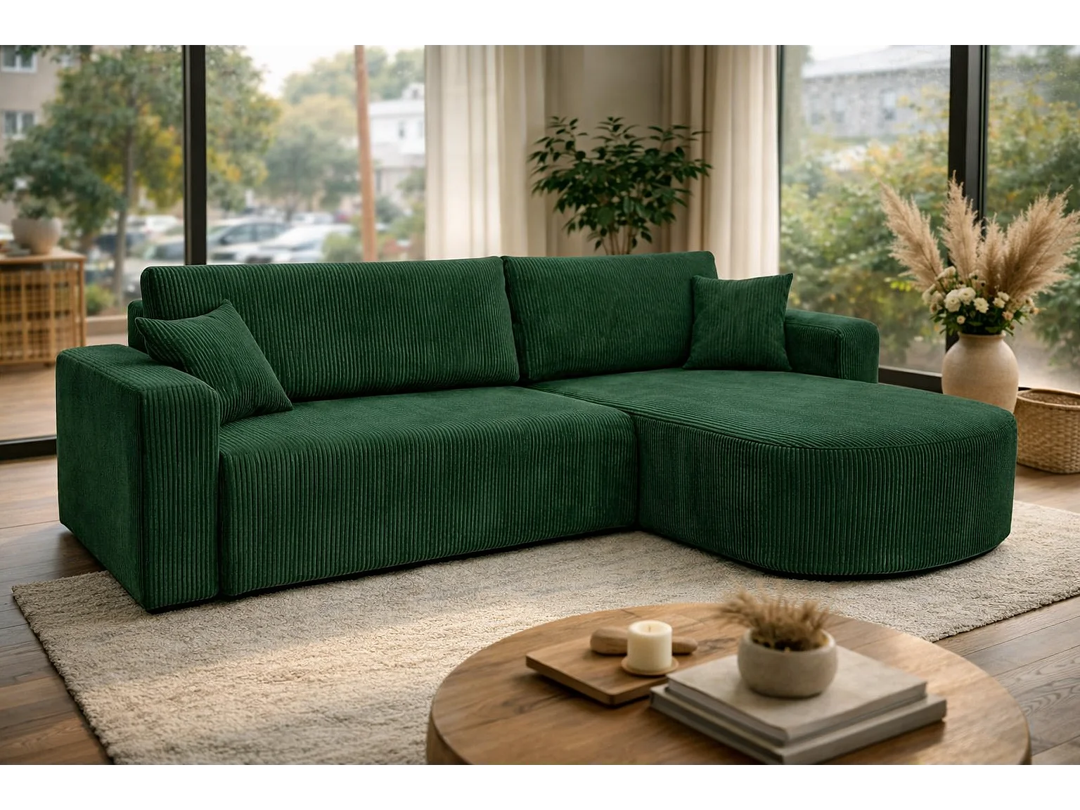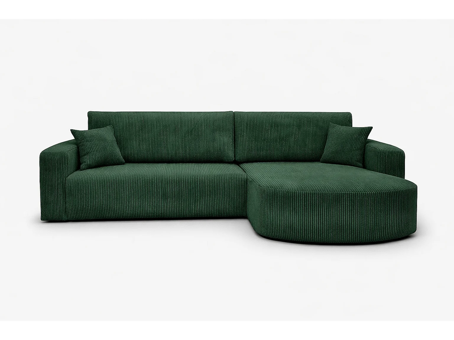Canapé d'Angle réversible convertible avec fonction de couchage coffre universel en velours côtelé vert bouteille Kimo XL