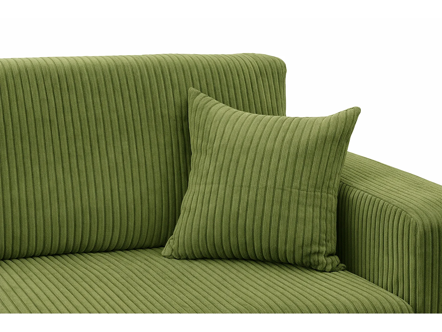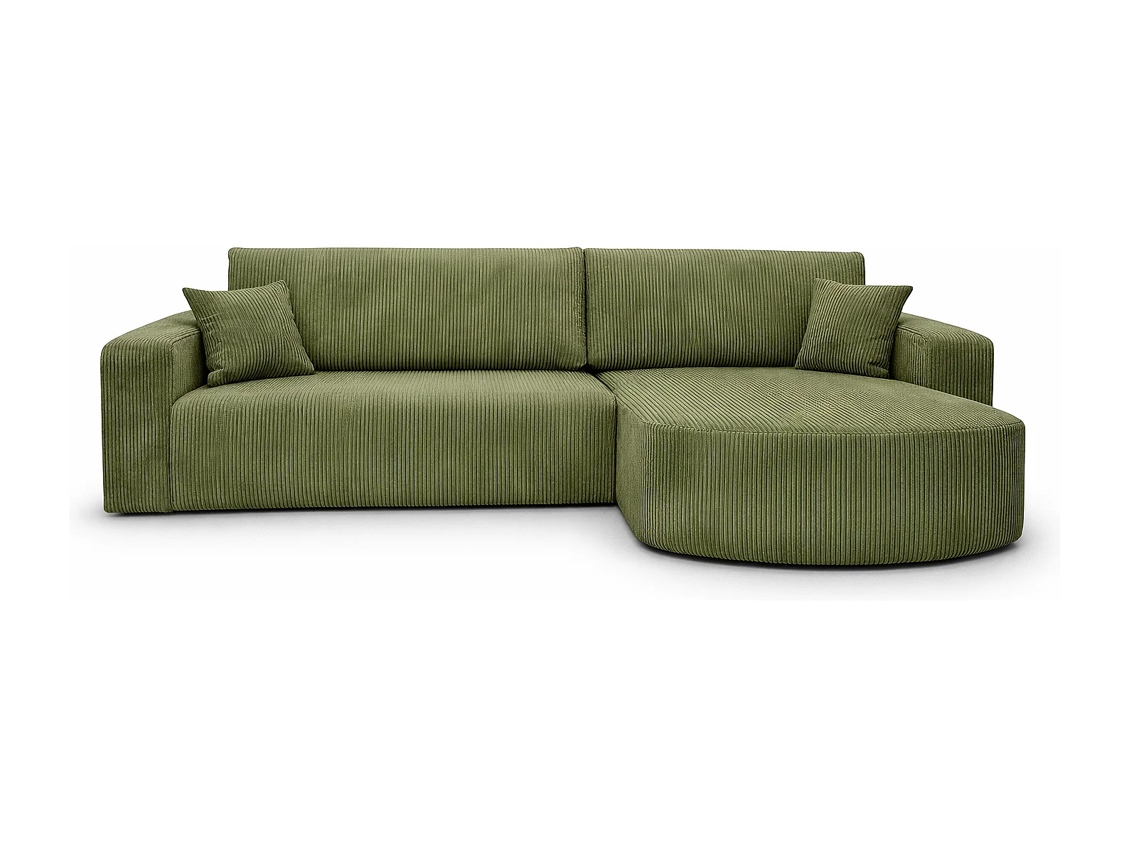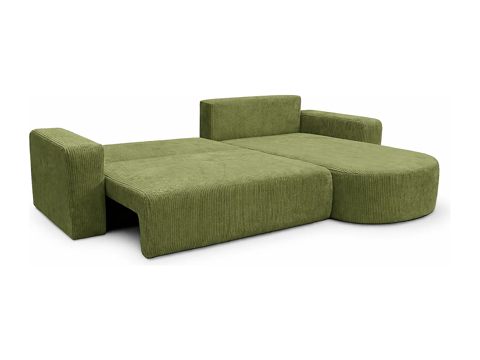 Canapé d'Angle réversible convertible avec fonction de couchage coffre universel en velours côtelé vert Kimo XL