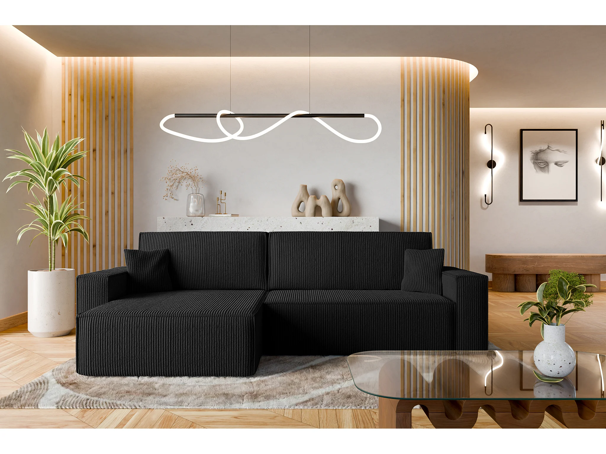 Canapé d'Angle réversible convertible avec fonction de couchage Karl XL coffre universel en velours côtelé noir du fabricant VINOTTI