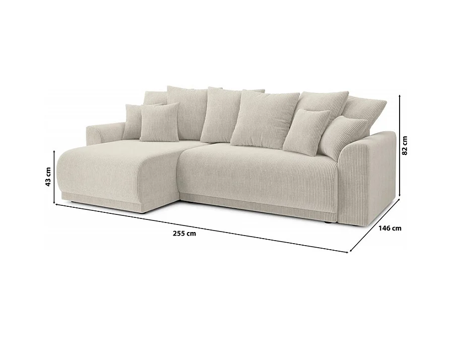 Canapé d'angle réversible convertible velours côtelé 4 places beige OPALE