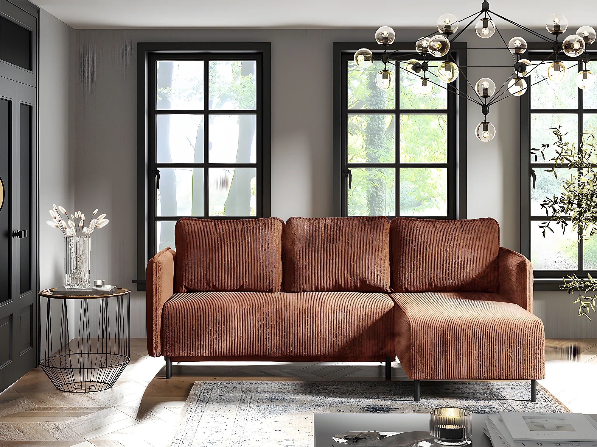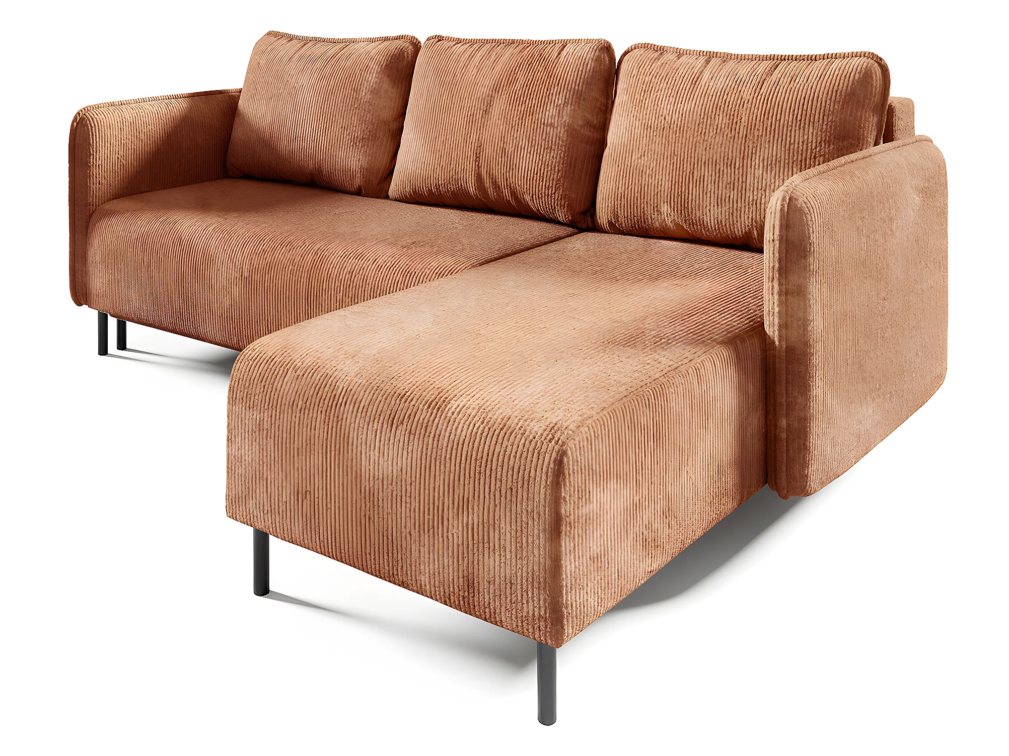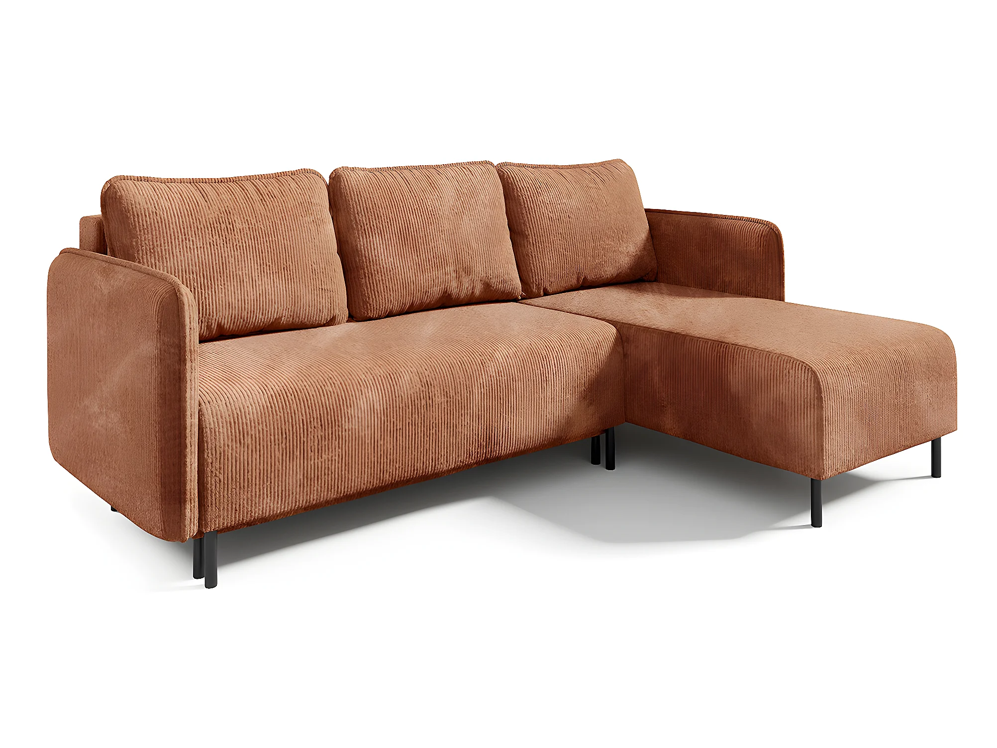 Canapé d'angle réversible et convertible 3 places avec coffre Robin velours côtelé Orange brique