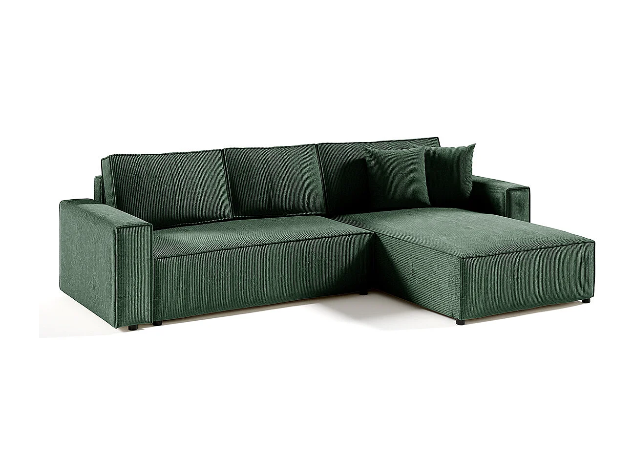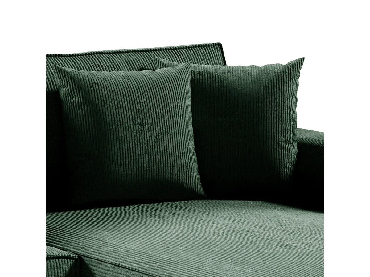 Canapé d'angle réversible et convertible 4 places avec coffre Isaac velours côtelé Vert Sapin