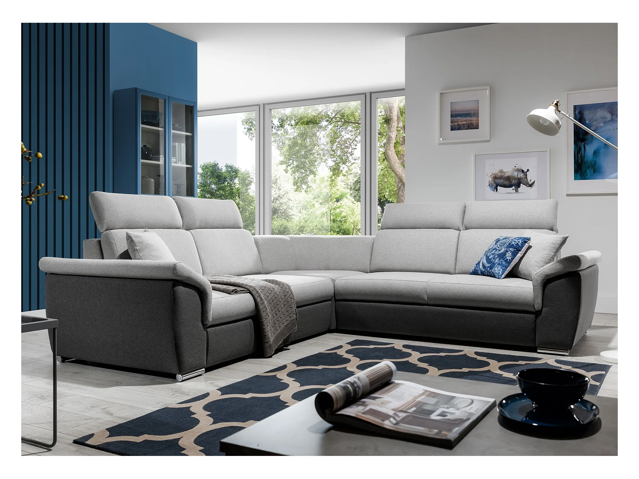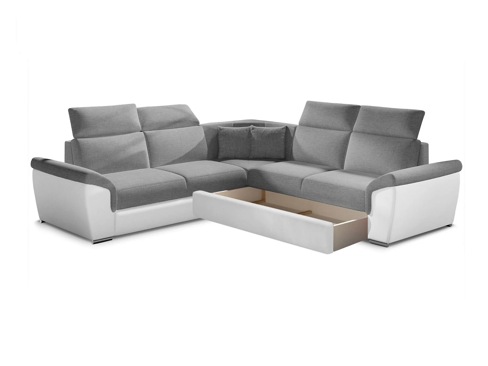 Canapé d'angle réversible et convertible bi-matières Neo - Pieds acier chromé-Blanc/Gris chiné