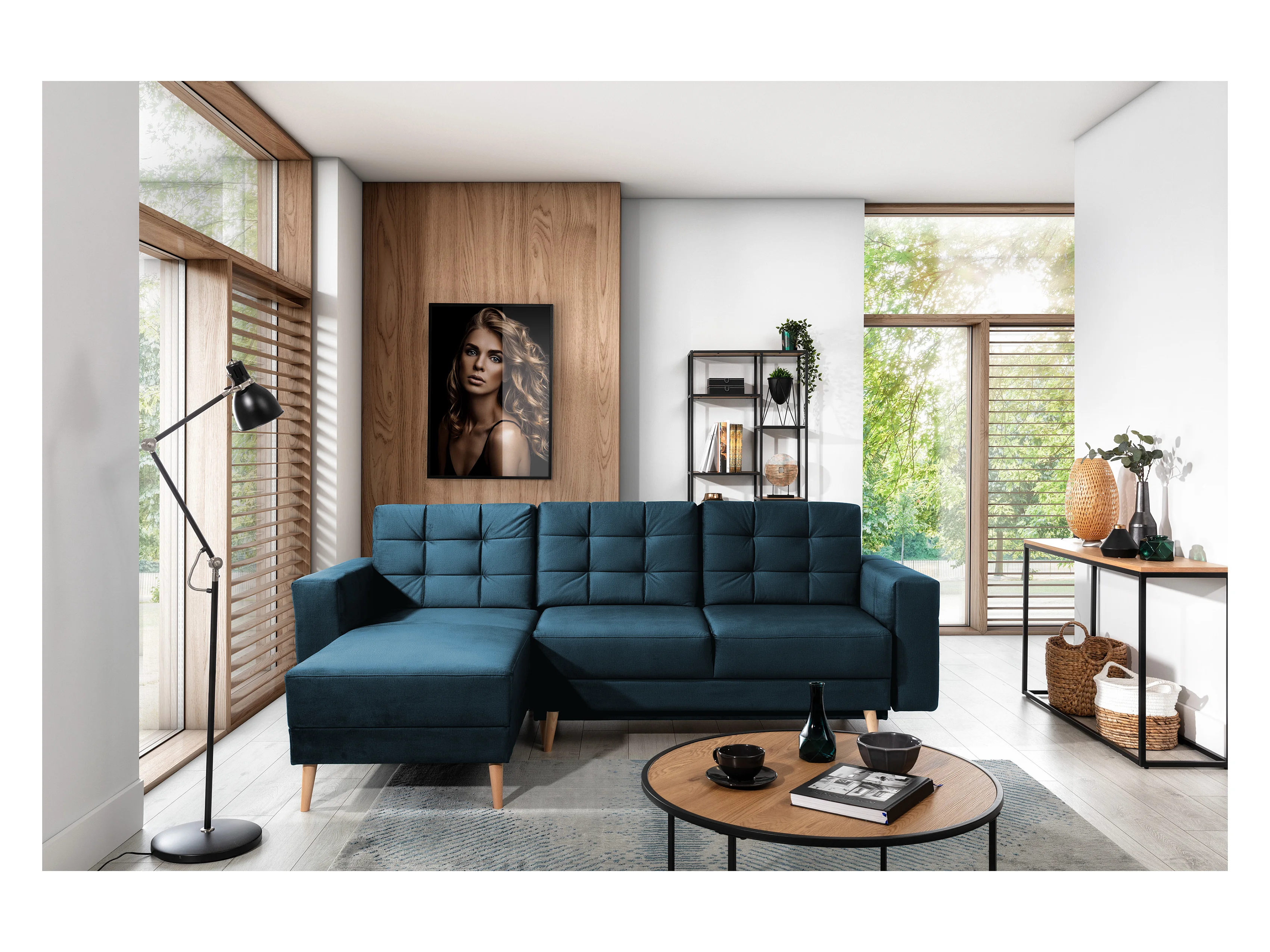 Canapé d'angle réversible et convertible velours bleu marine Anska 235cm