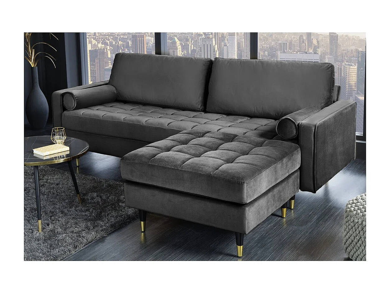 Canapé d'angle réversible KOLIRI gris – Canapé design en velours avec pouf assorti