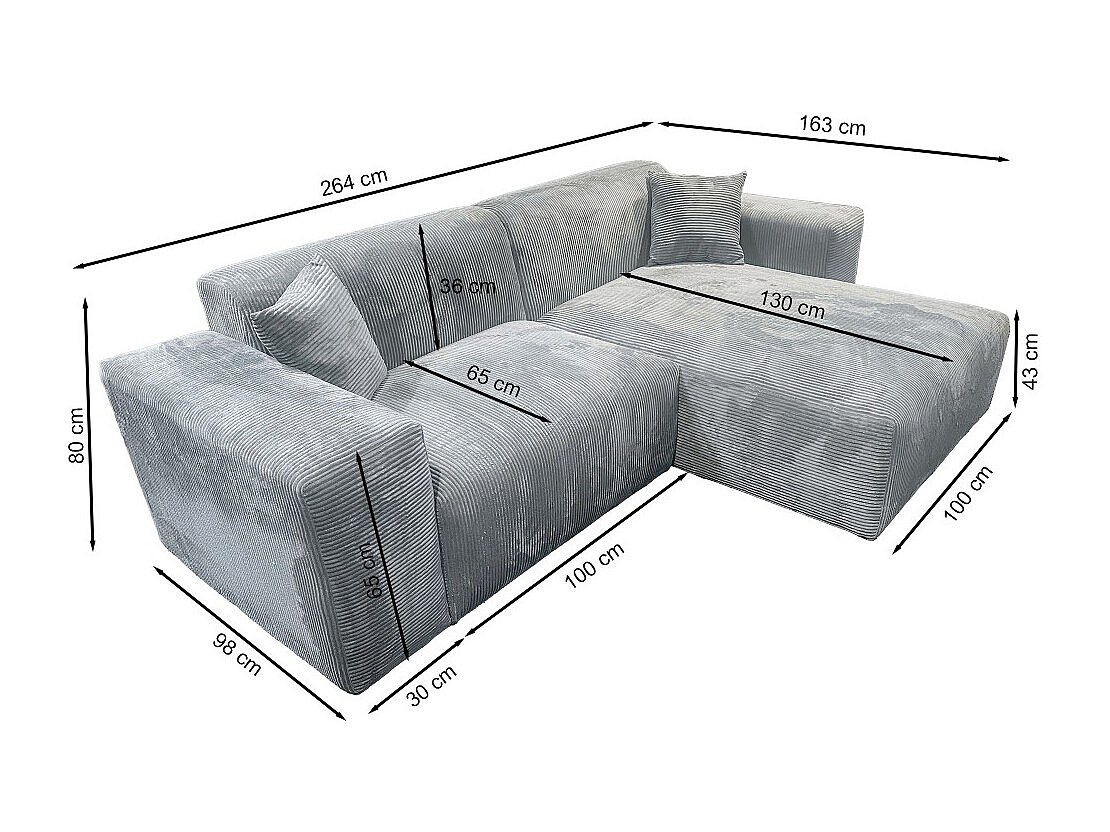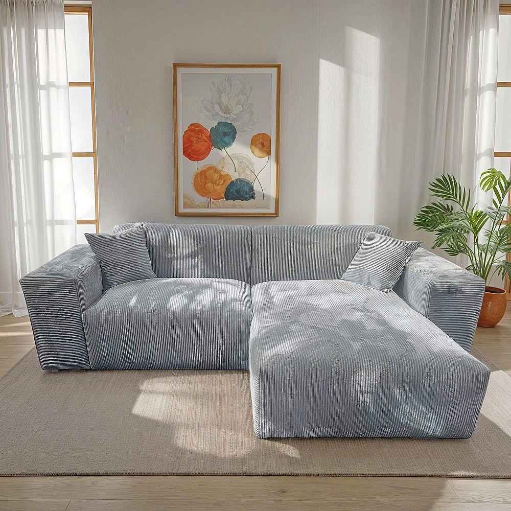 Canapé d'angle réversible LANA en velours côtelé / Gris