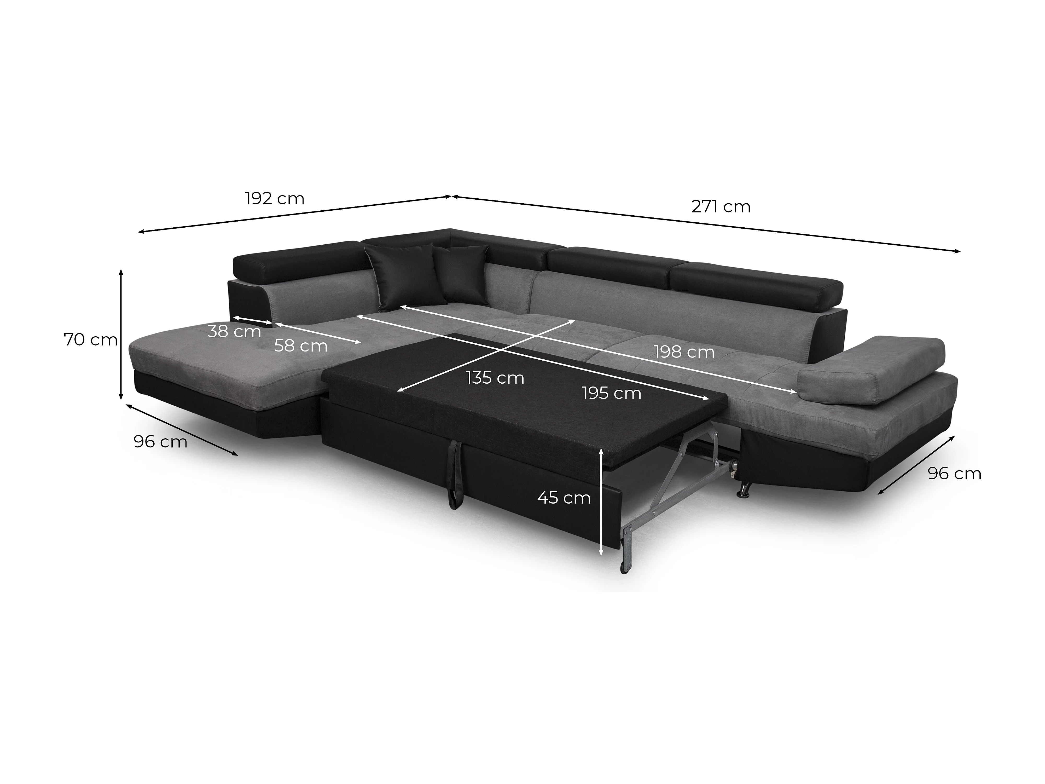 Canapé d'angle droit 5 places Rio convertible avec coffre en microfibre et simili - Gris/Noir - L271 x P192 x H70cm - Loungitude