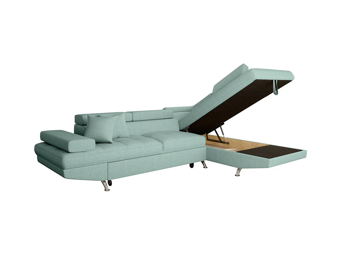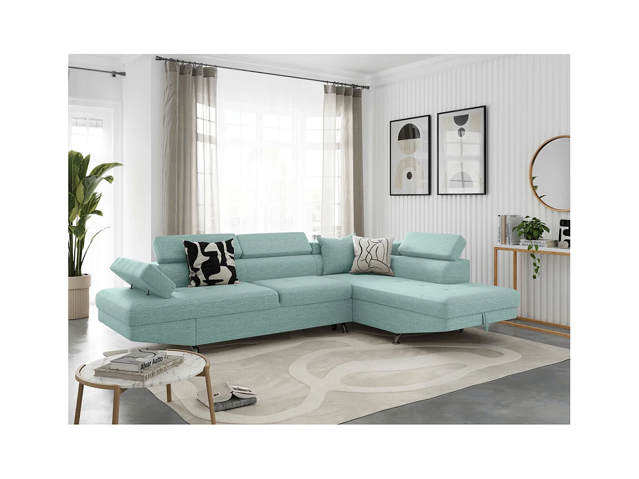 Canapé d'angle droit 5 places Rio Convertible avec coffre en tissu - Bleu clair - L271 x P192 x H70cm - Loungitude