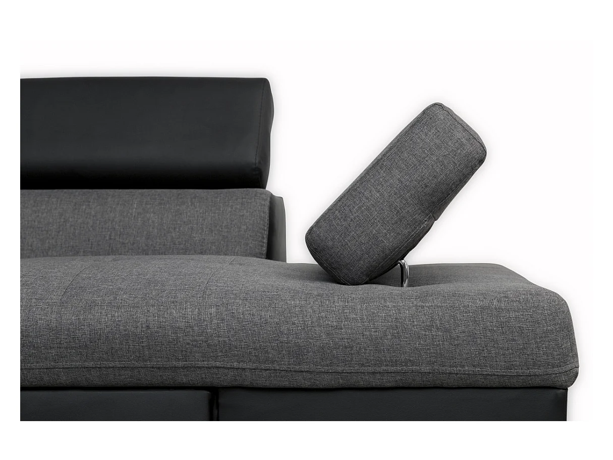 Canapé d'angle gauche 5 places Rio Convertible avec coffre en tissu et simili - Gris/Noir - L271 x P192 x H70cm - Loungitude