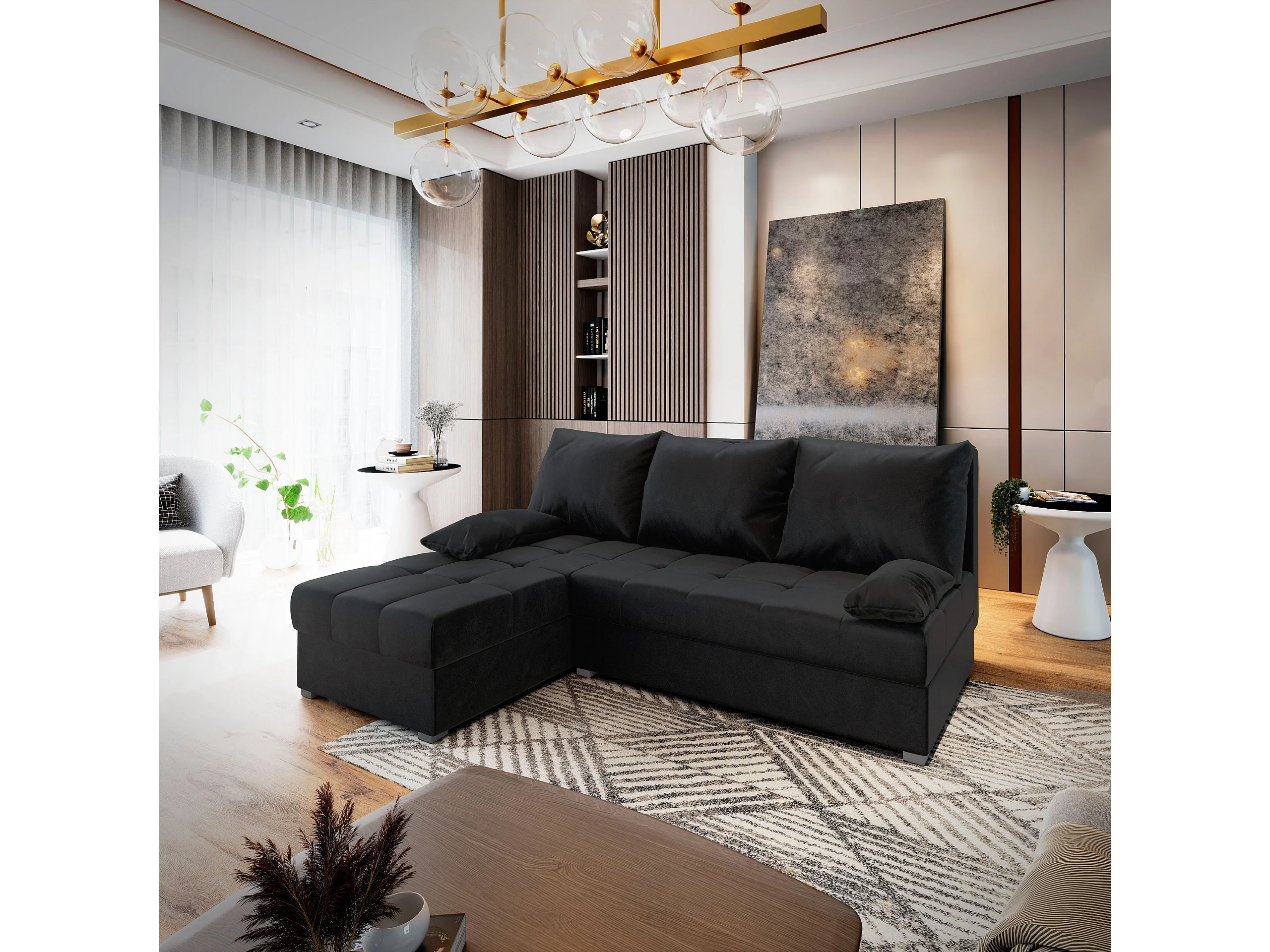 Canapé d'angle RITA Noir en peluche avec fonction de couchage