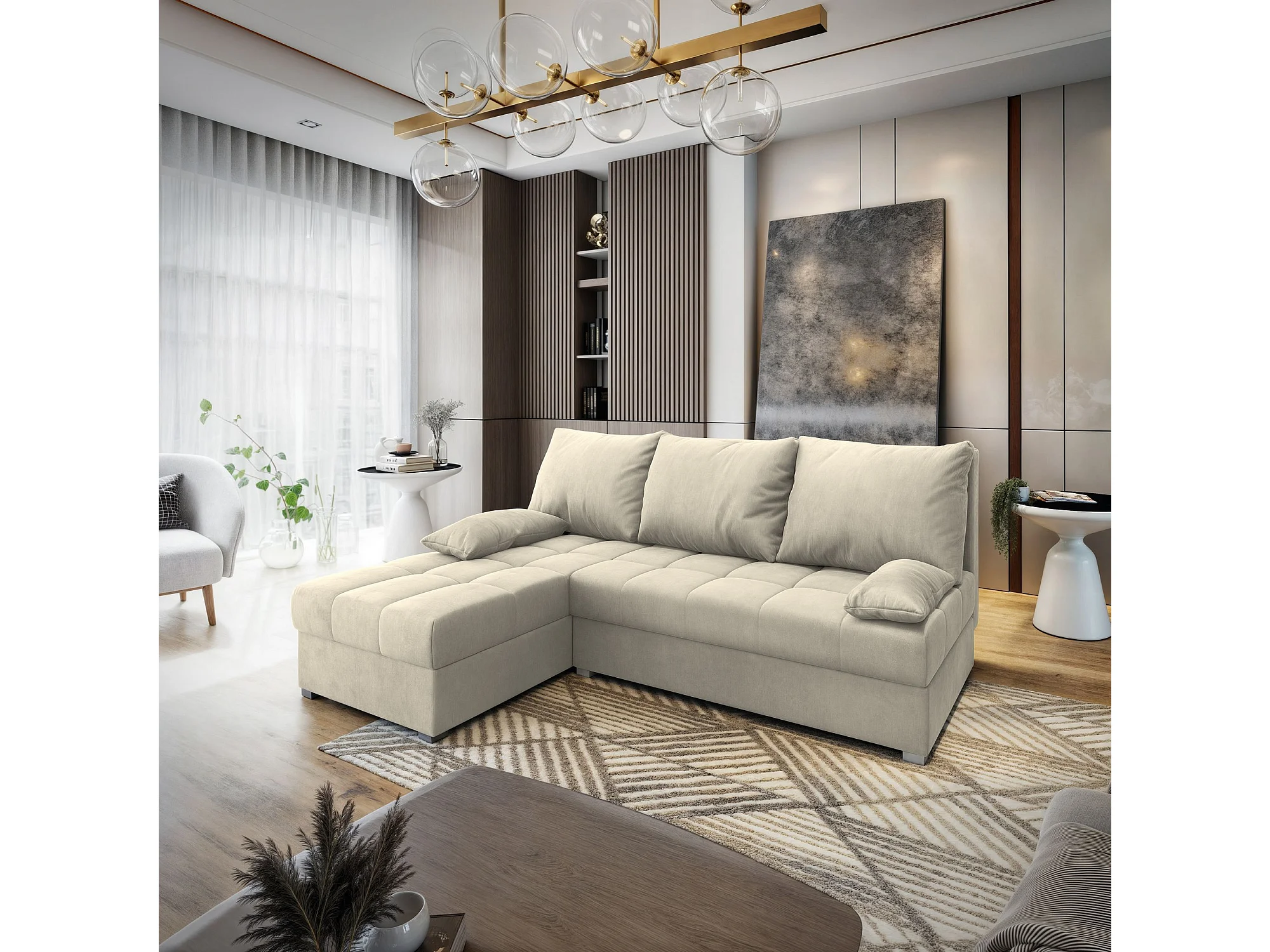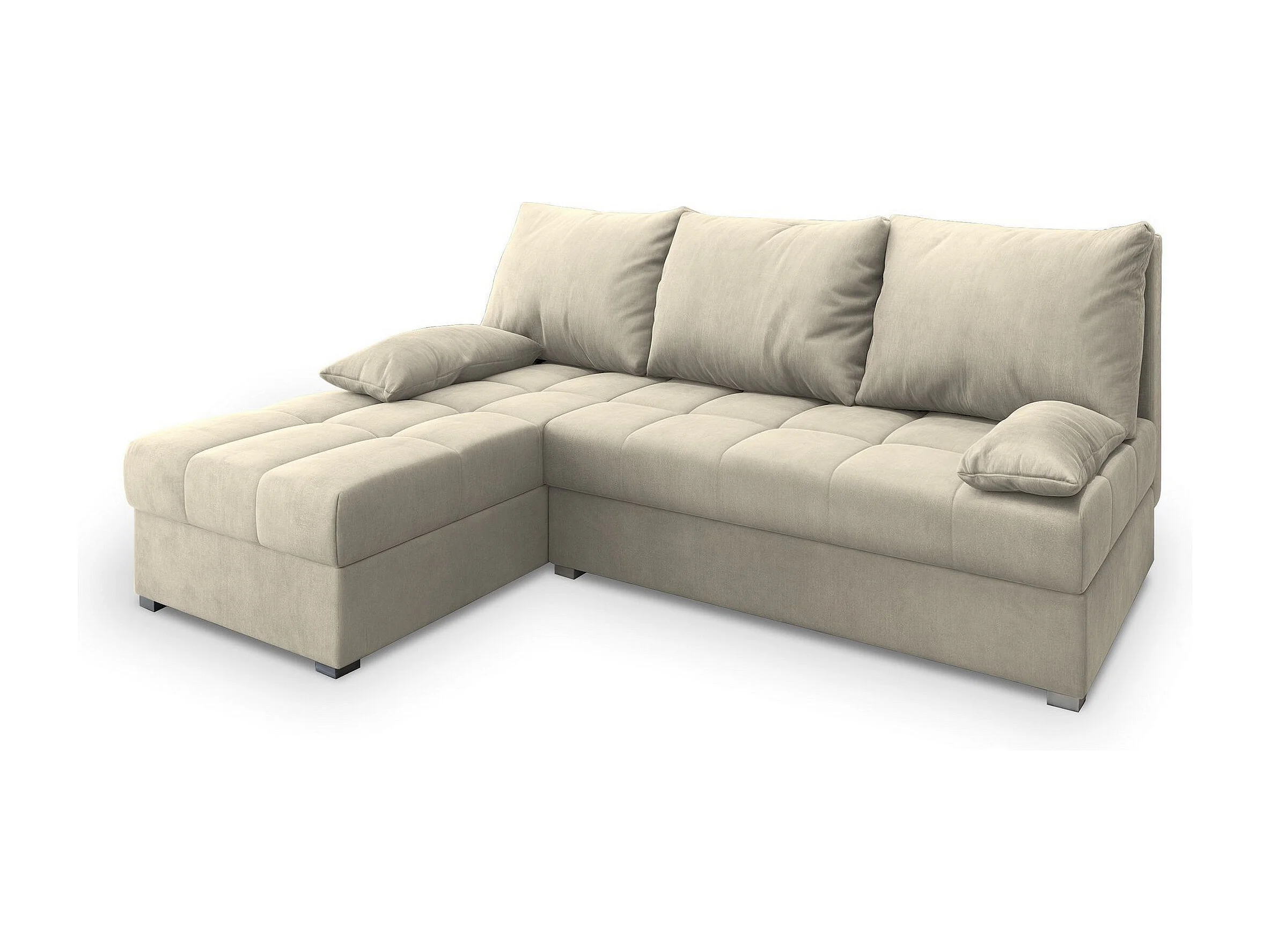 Canapé d'angle RITA Crème en velours avec fonction de couchage