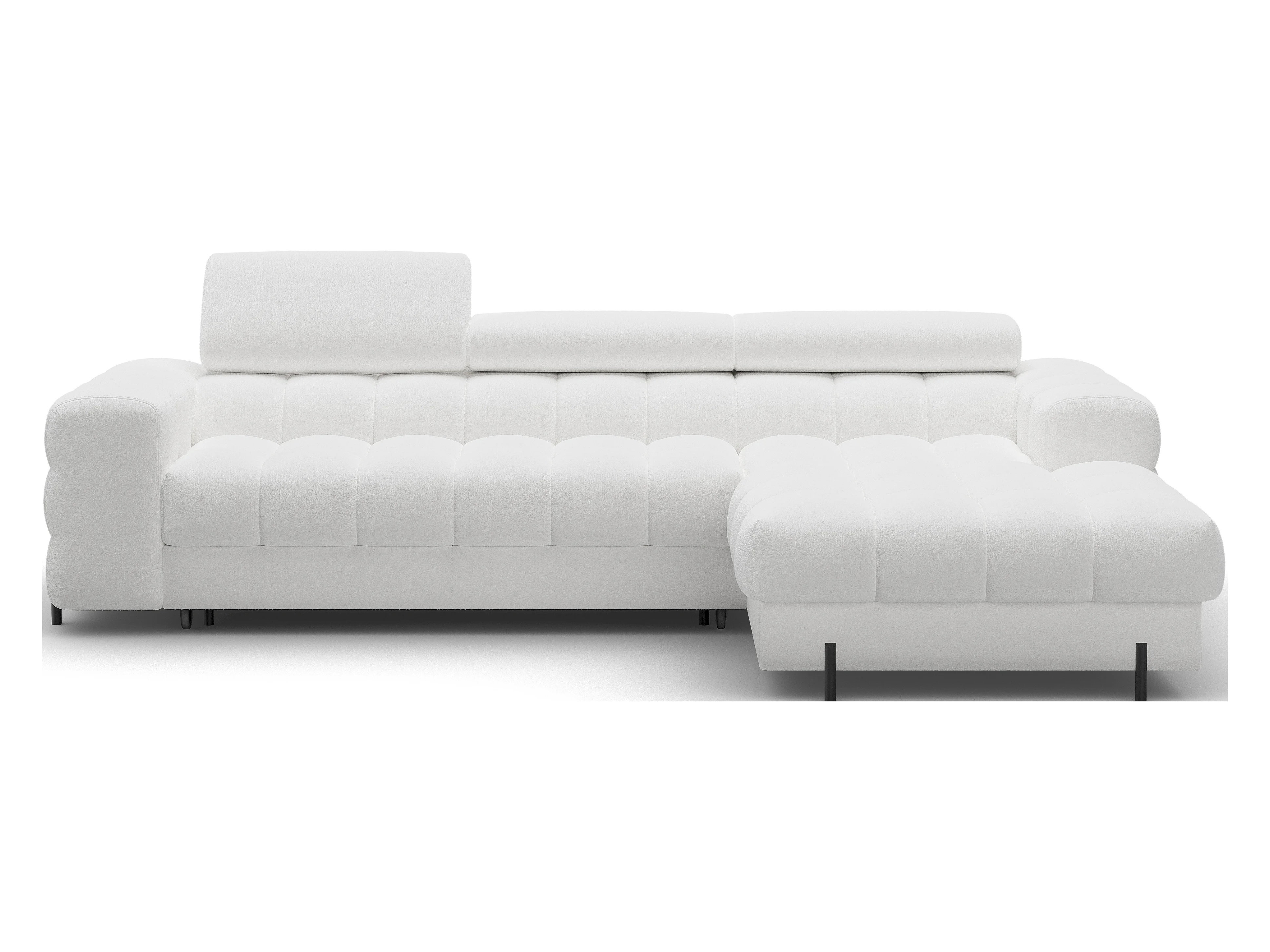 Canapé d’angle convertible tissu appuis-tête réglables KATE – Coffre et pieds métal noir-Blanc-angle droit