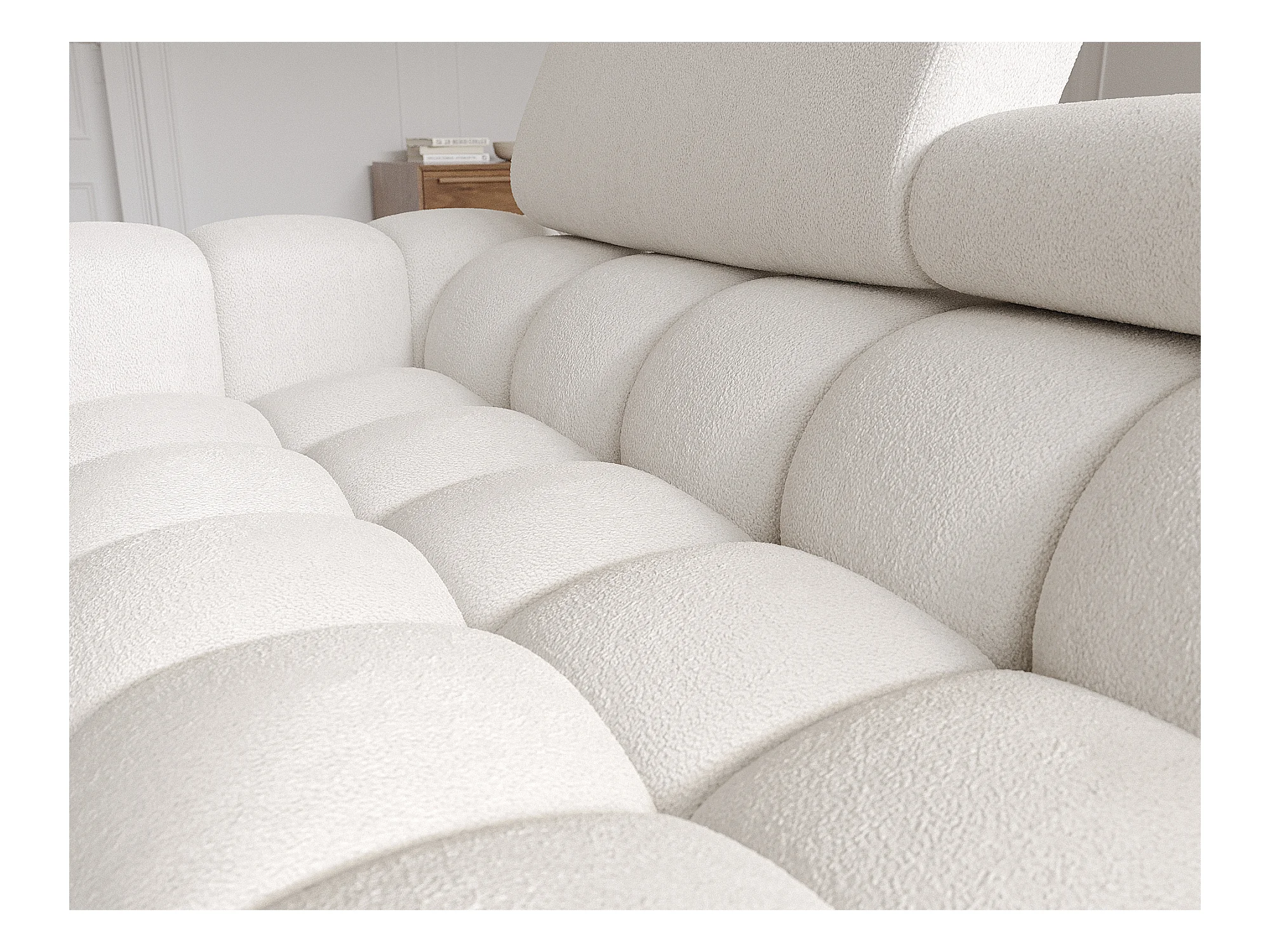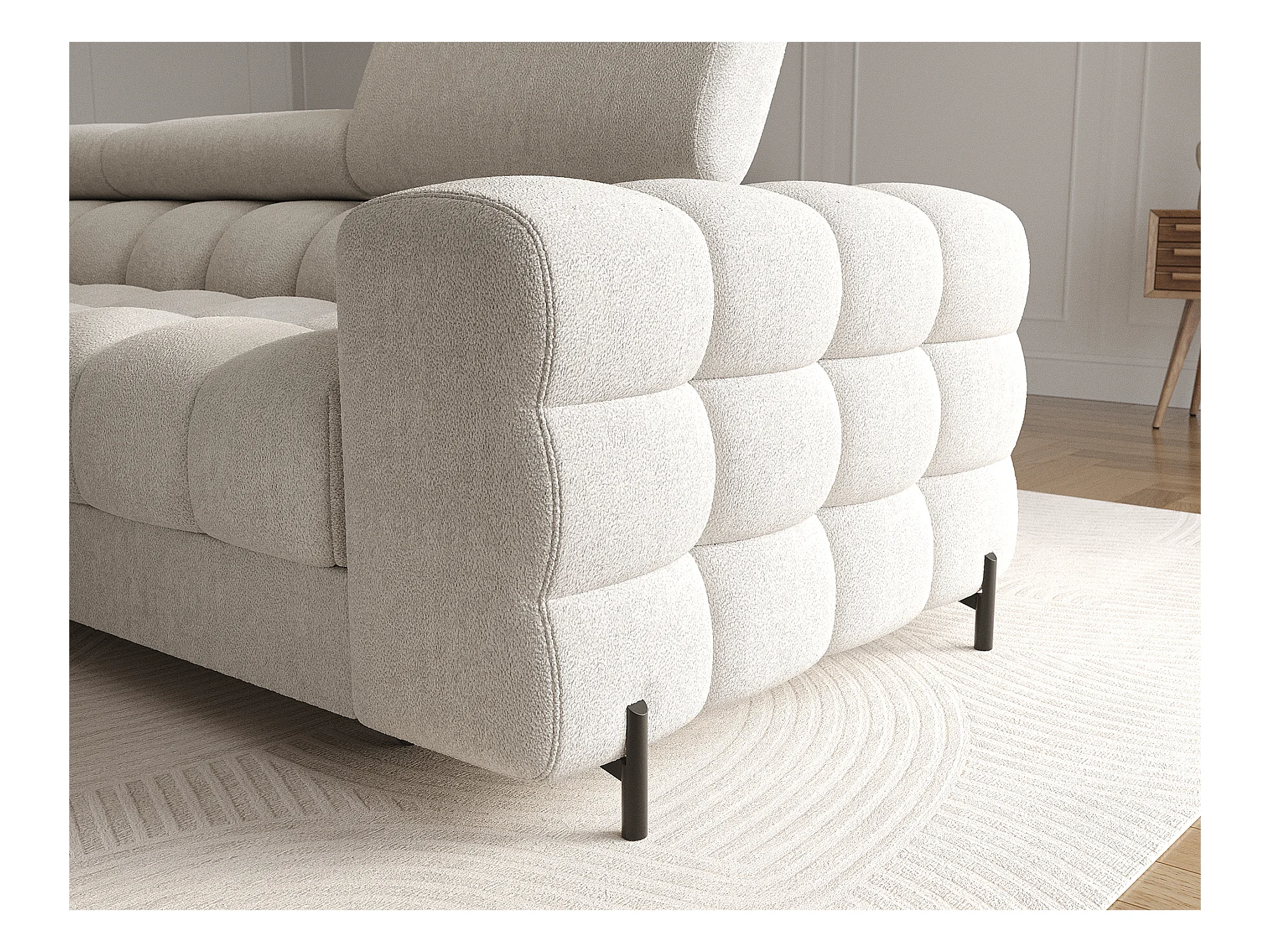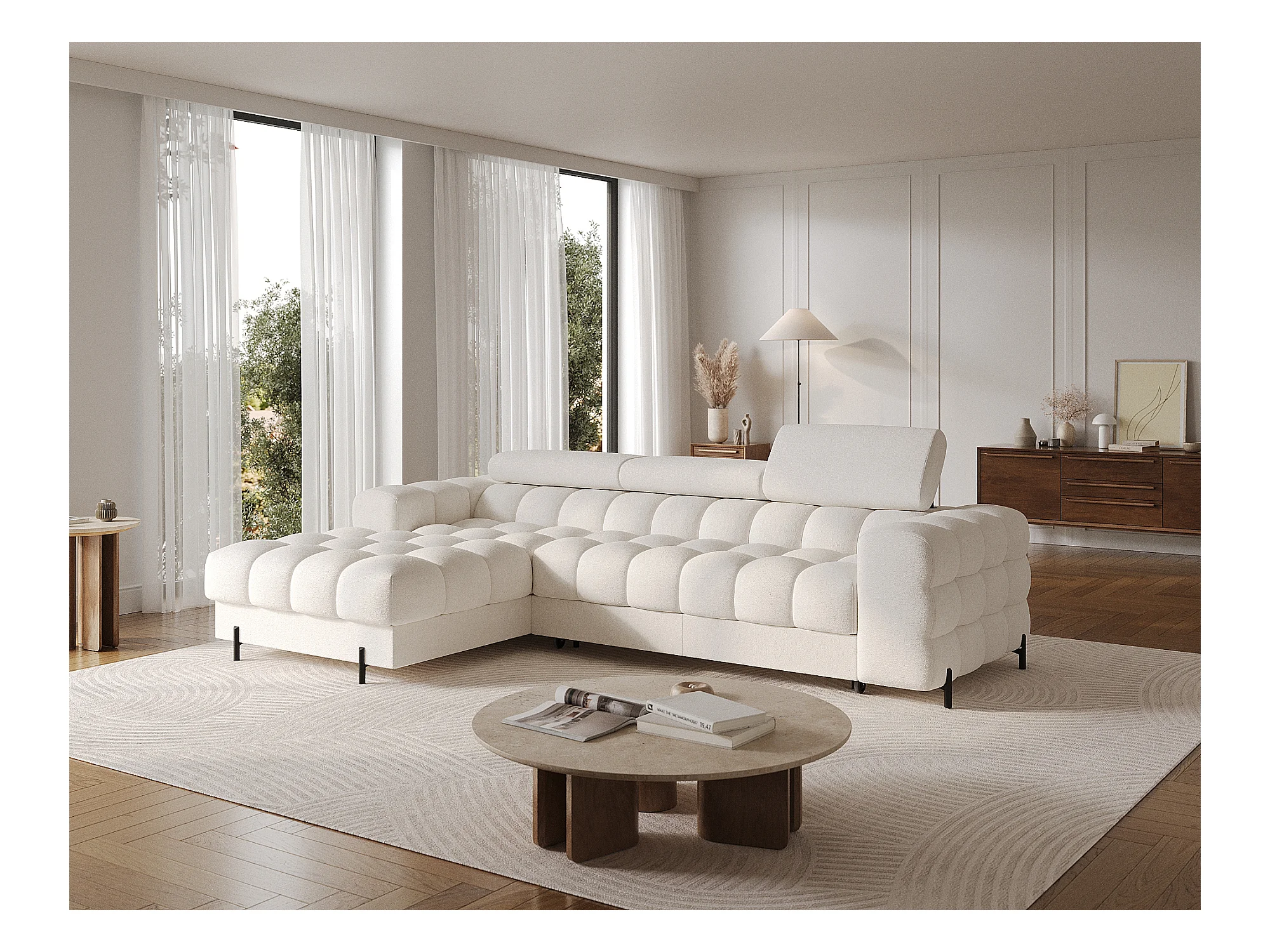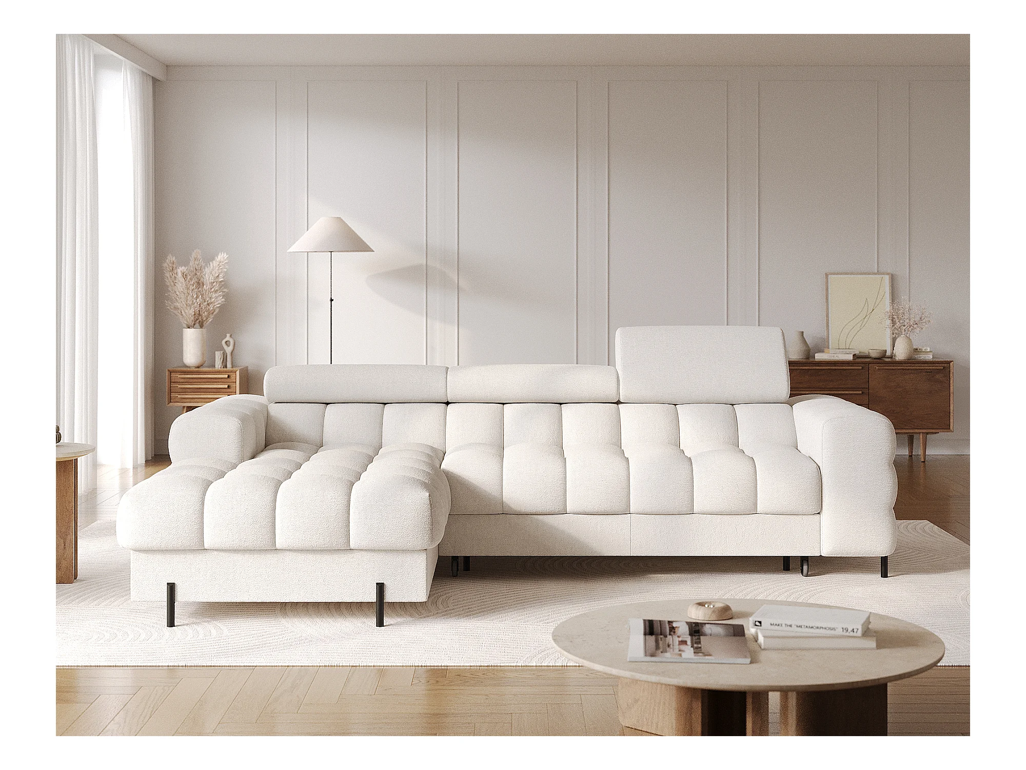 Canapé d’angle convertible tissu appuis-tête réglables KATE – Coffre et pieds métal noir-Blanc cassé-angle gauche