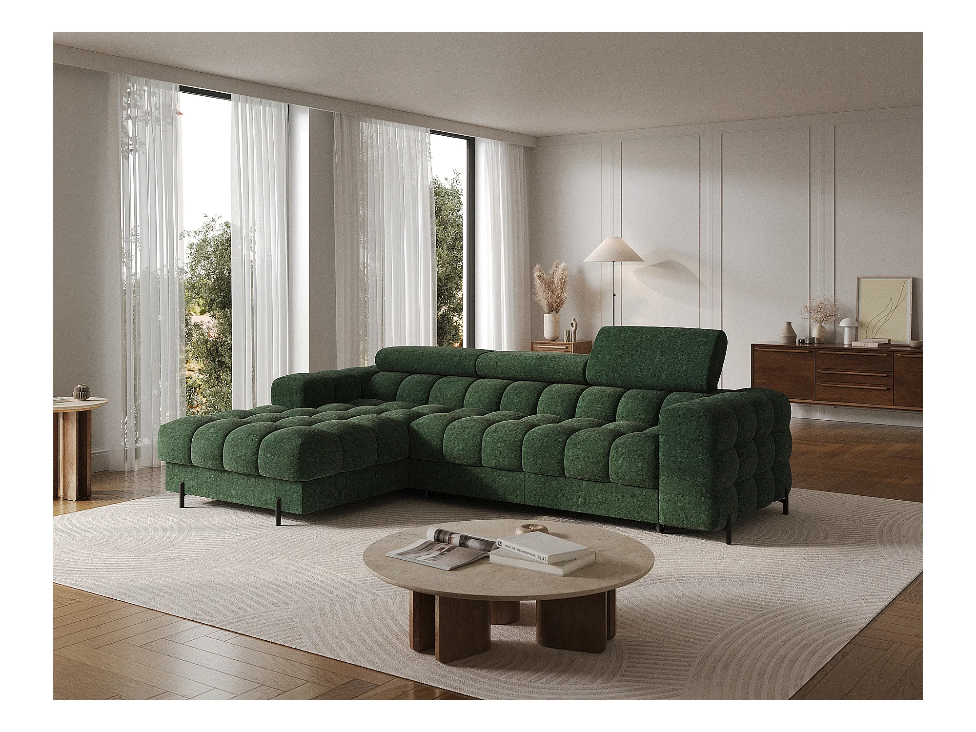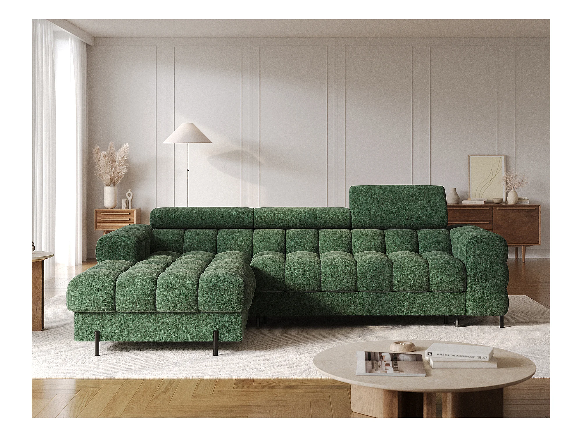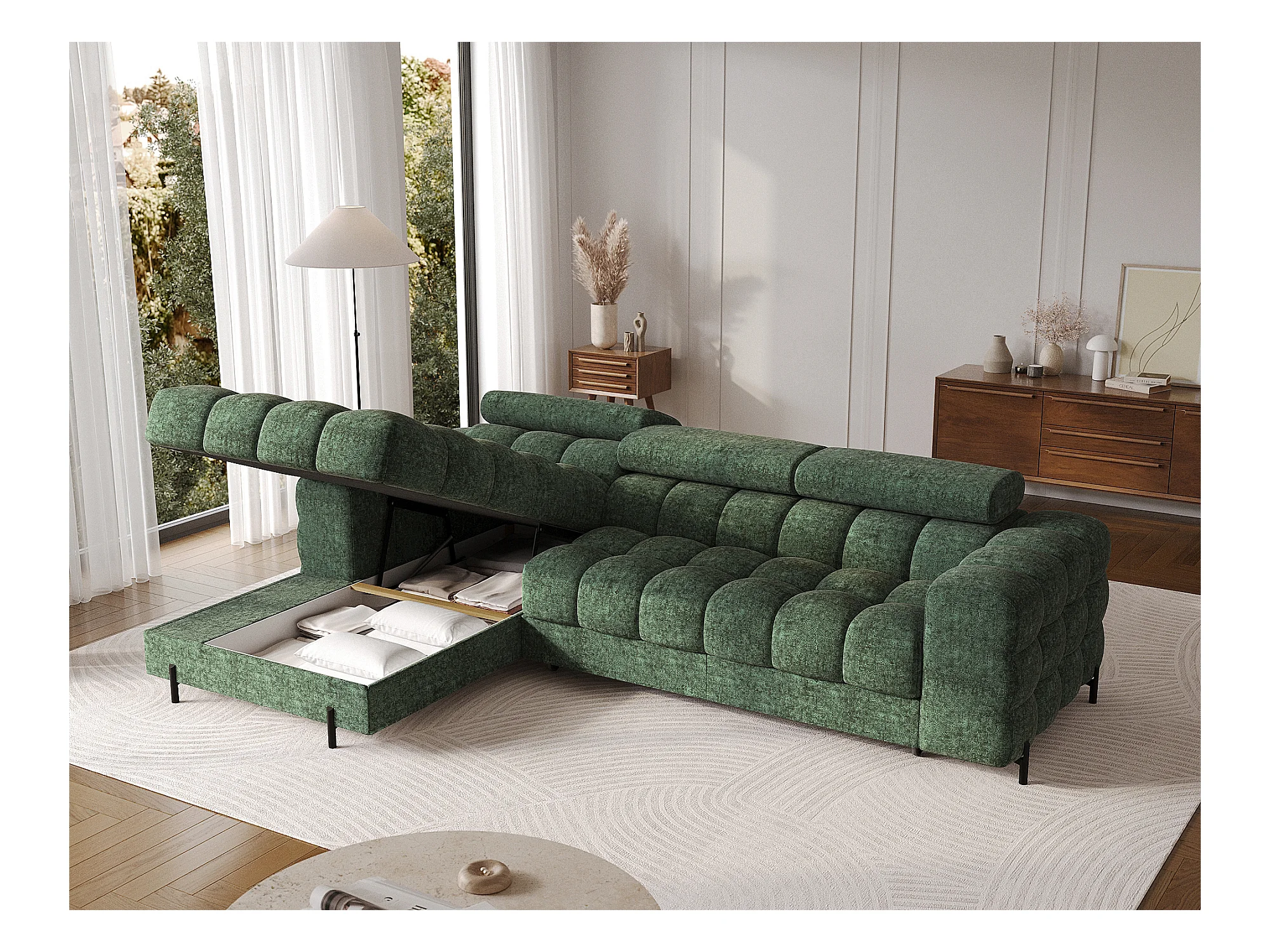 Canapé d’angle convertible tissu appuis-tête réglables KATE – Coffre et pieds métal noir-Vert sapin-angle gauche