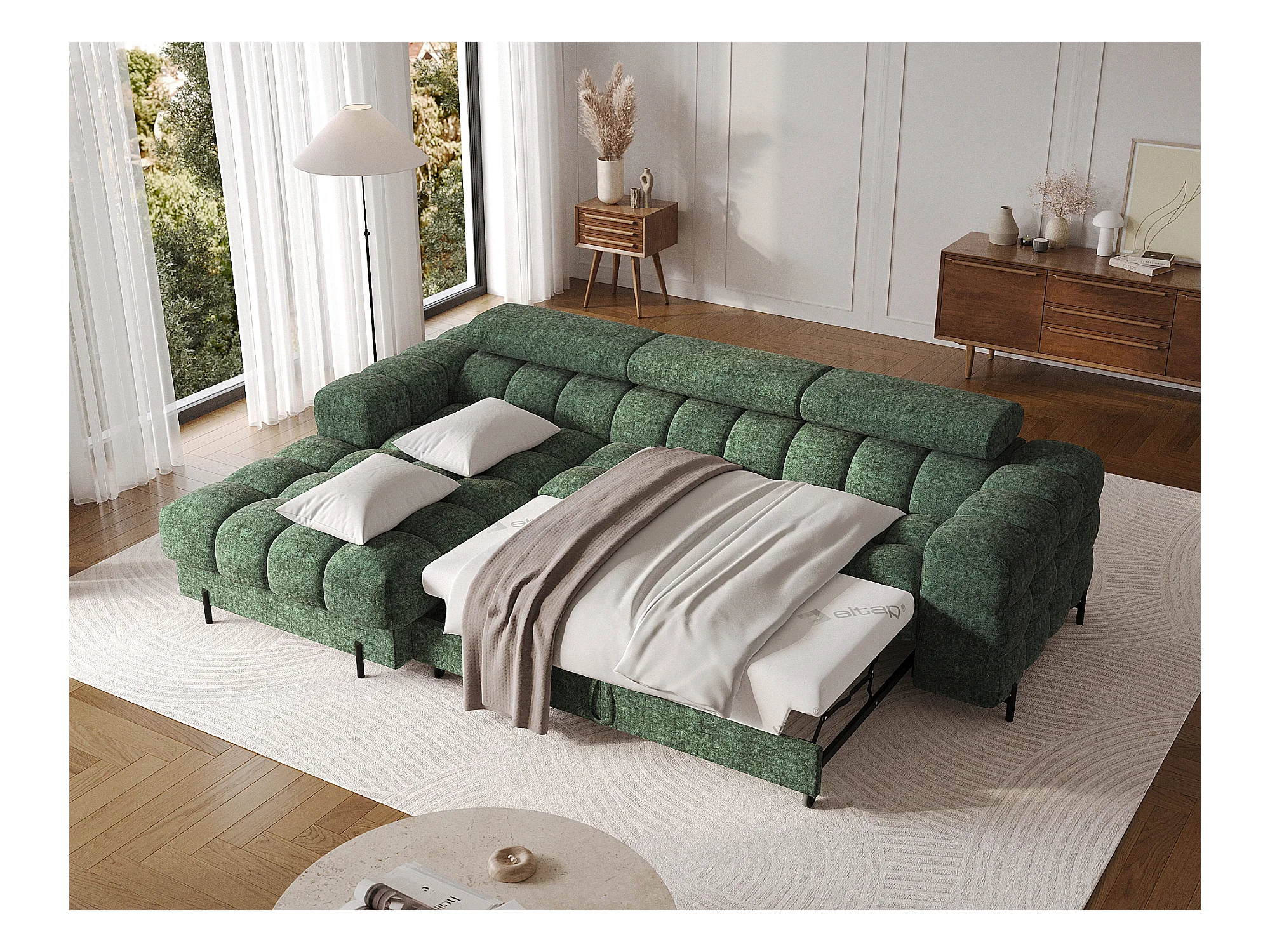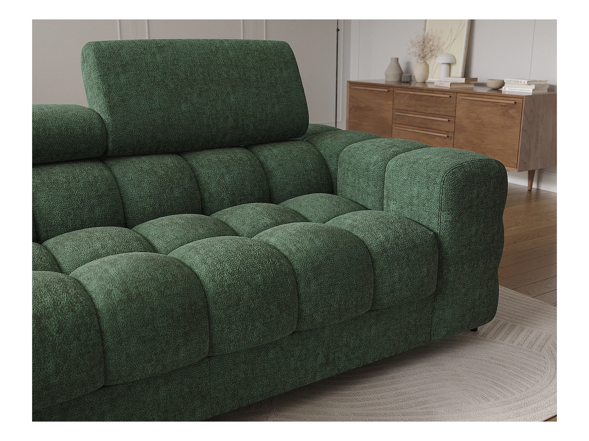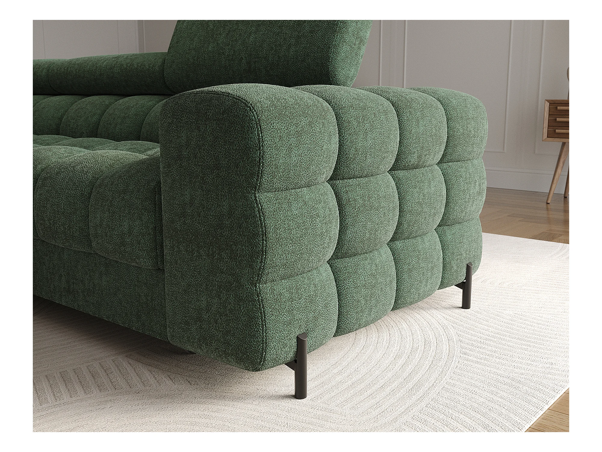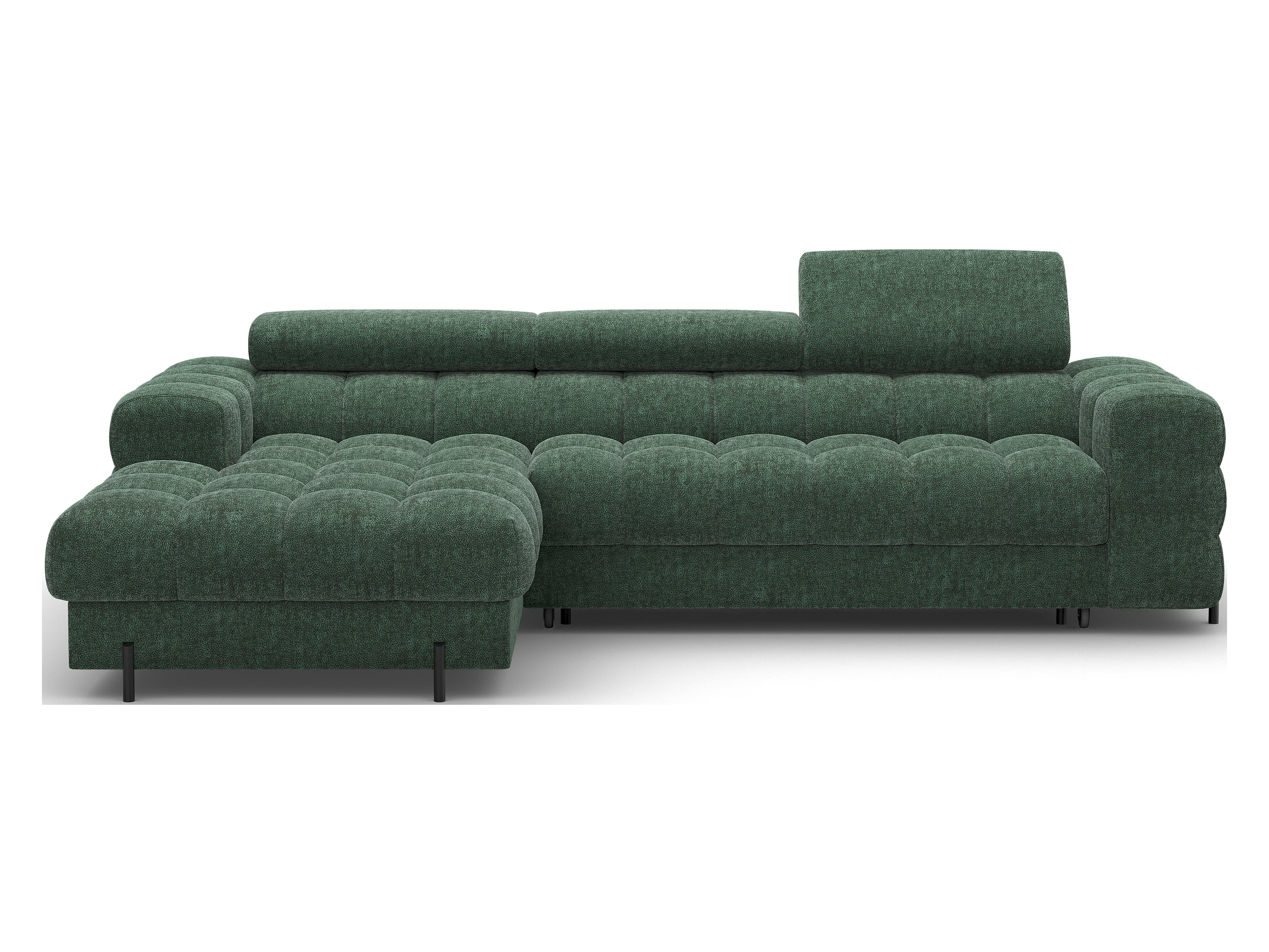 Canapé d’angle convertible tissu appuis-tête réglables KATE – Coffre et pieds métal noir-Vert sapin-angle gauche