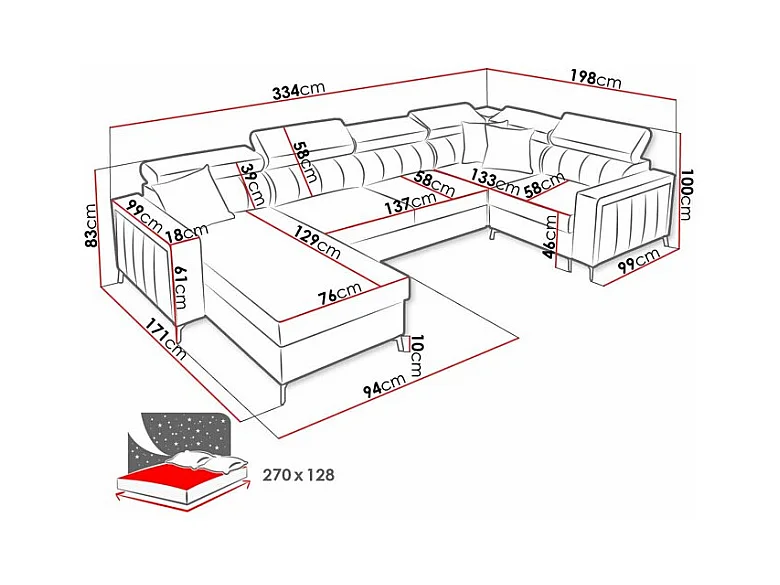 Canapé d'angle Sarasota 153, Rose, Disponible, 334x198x83cm