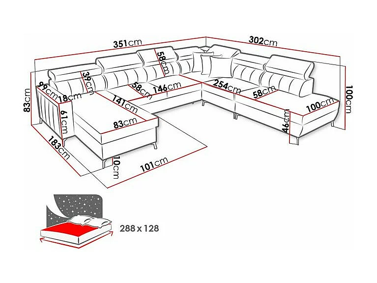 Canapé d'angle Sarasota 155, Rose, Disponible, 351x302x83cm