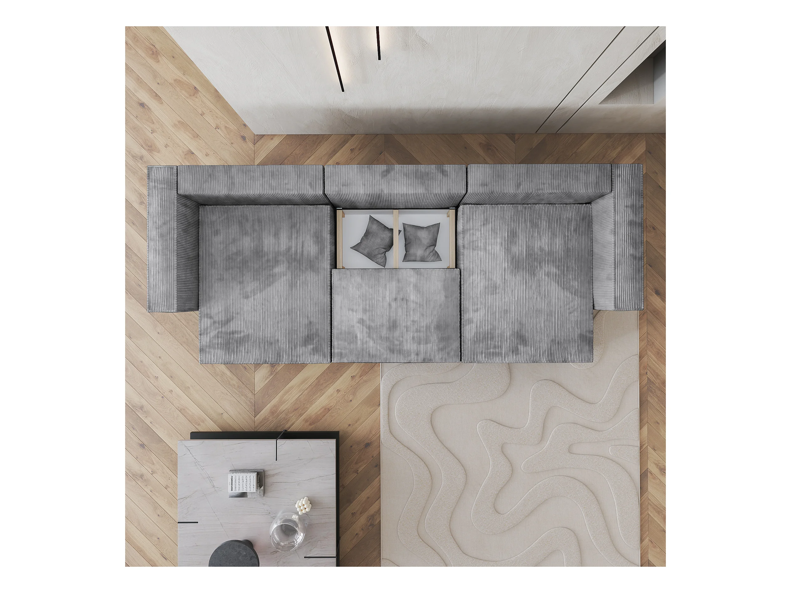 Canapé d'angle SARMO Gris en velours côtelé avec fonction de couchage