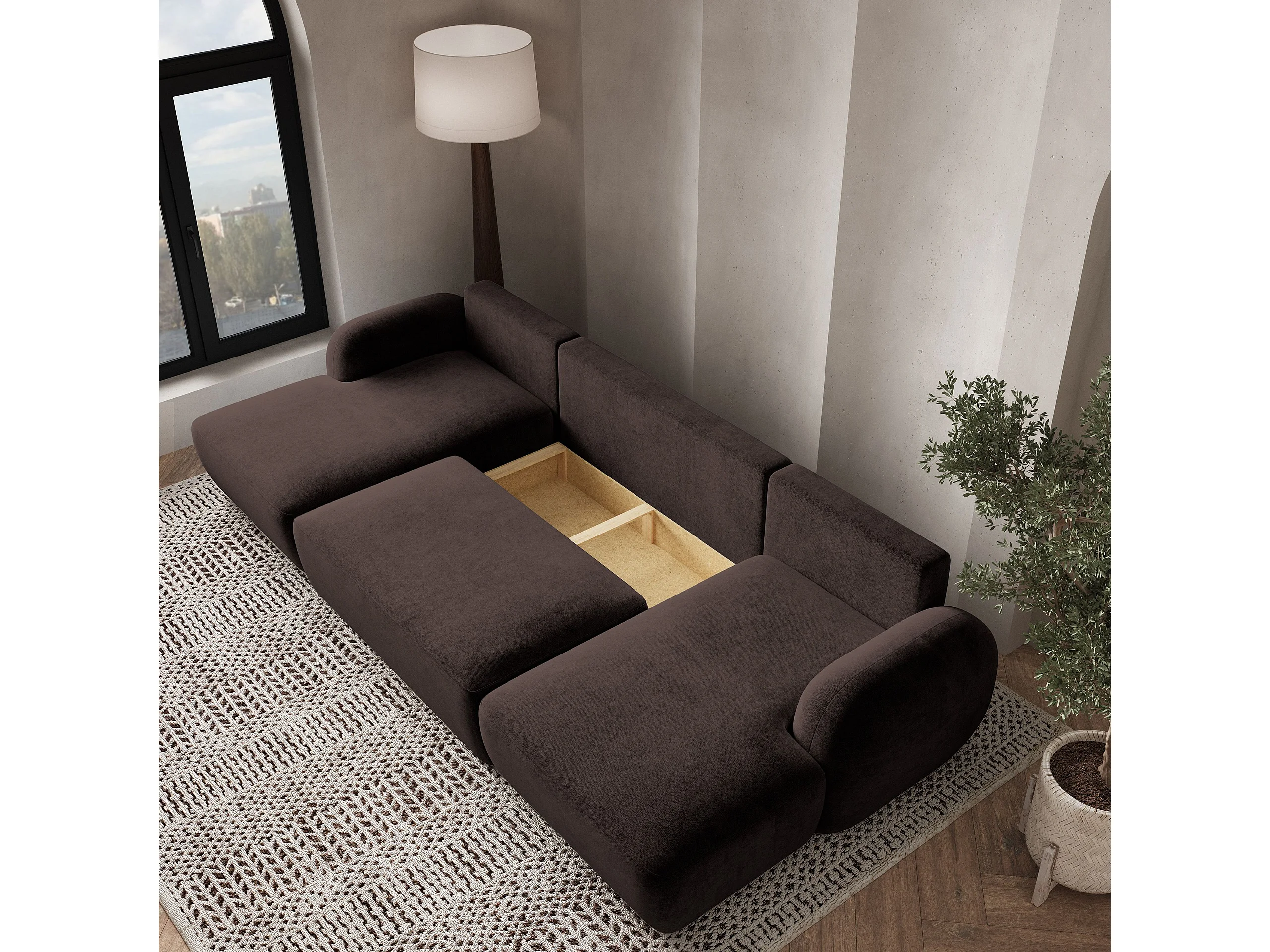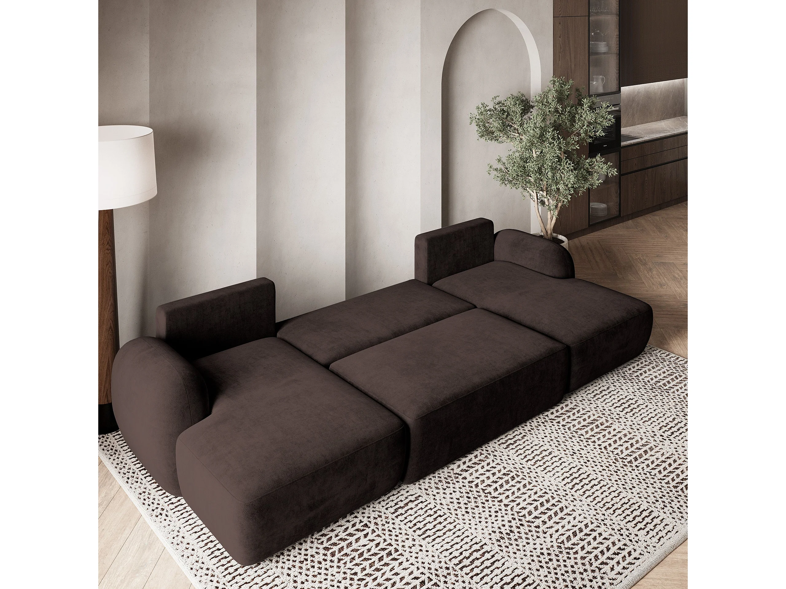 Canapé d'angle SAVONA Marron en peluche avec fonction de couchage