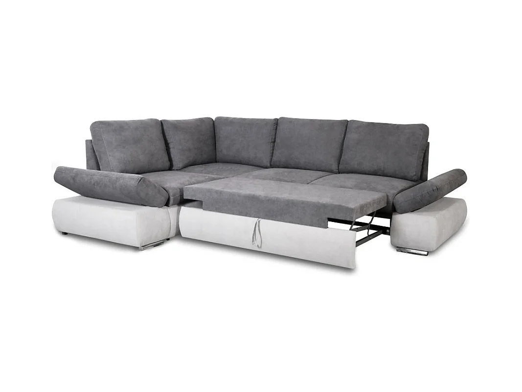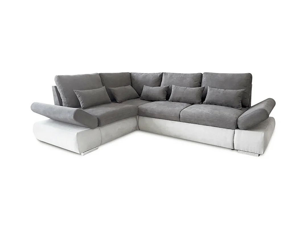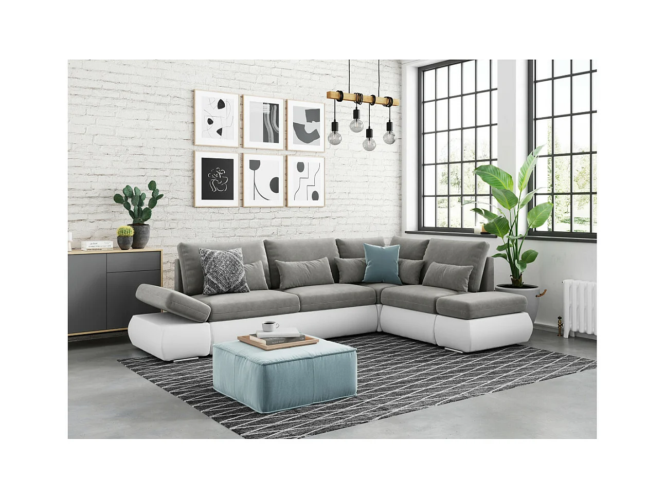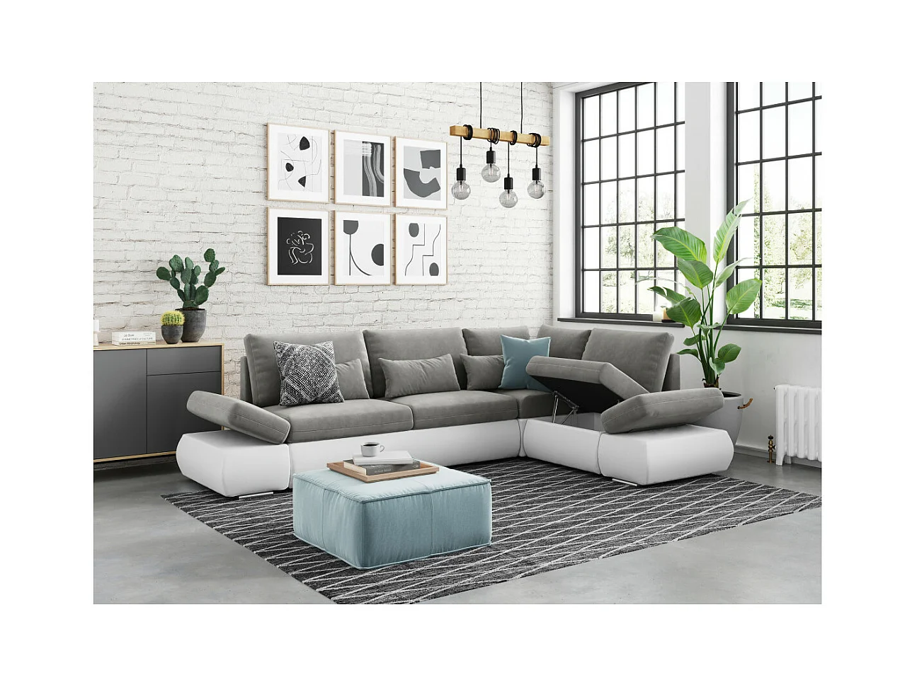 Canapé d'angle Sebastian Réversible et Convertible avec coffre en simili et tissu - Gris clair - L267 x P200 x H90cm - Loungitude