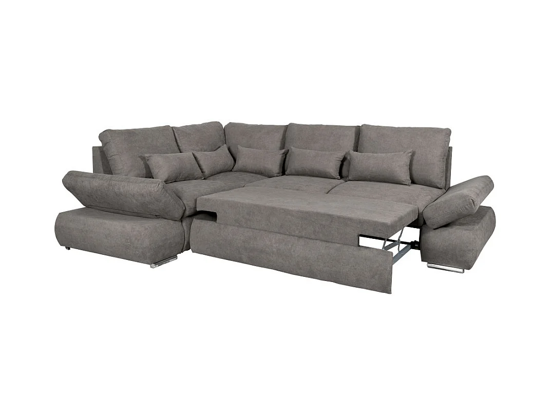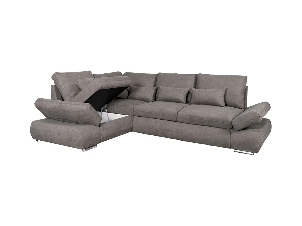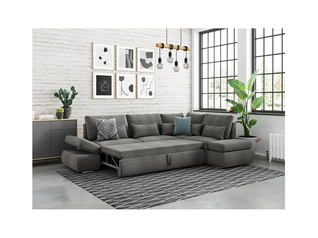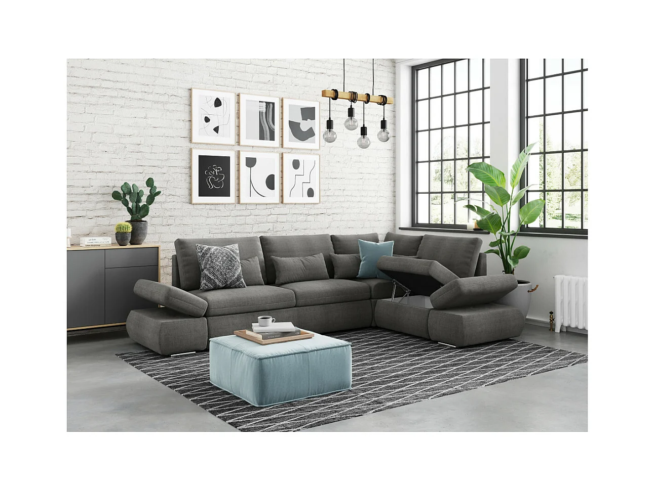 Canapé d'angle Sebastian Réversible et Convertible avec coffre en tissu - Gris - L267 x P200 x H90cm - Loungitude