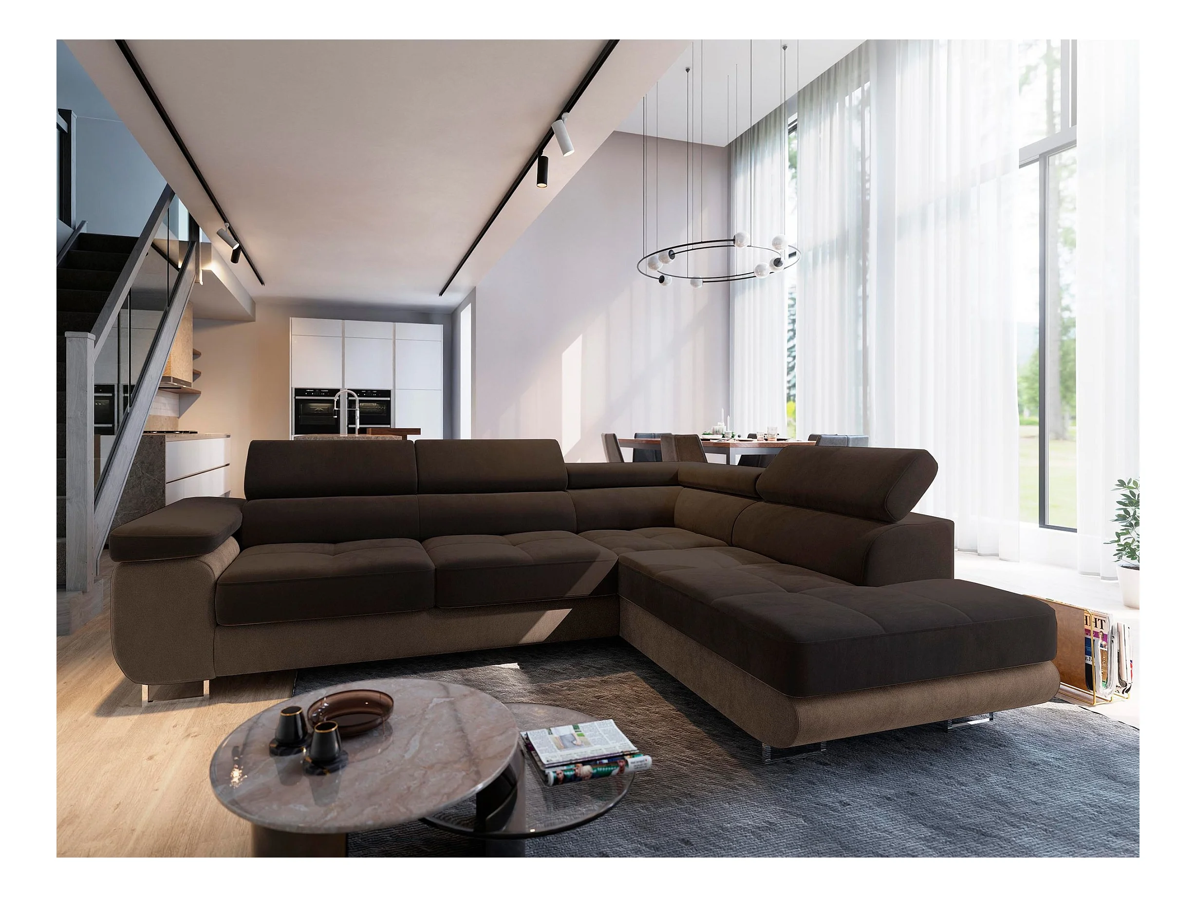Canapé d'angle SELVA Marron en velours avec fonction de couchage