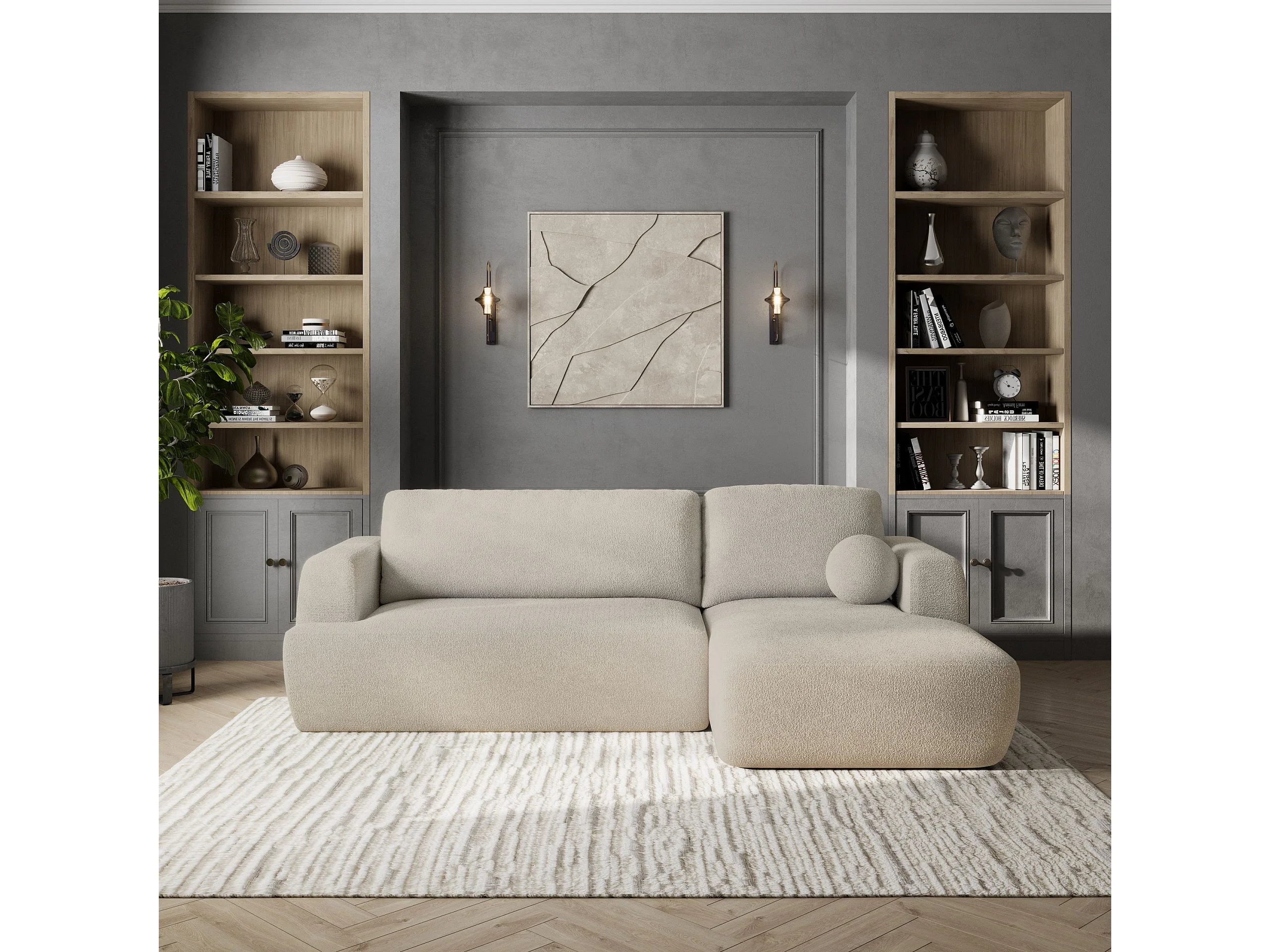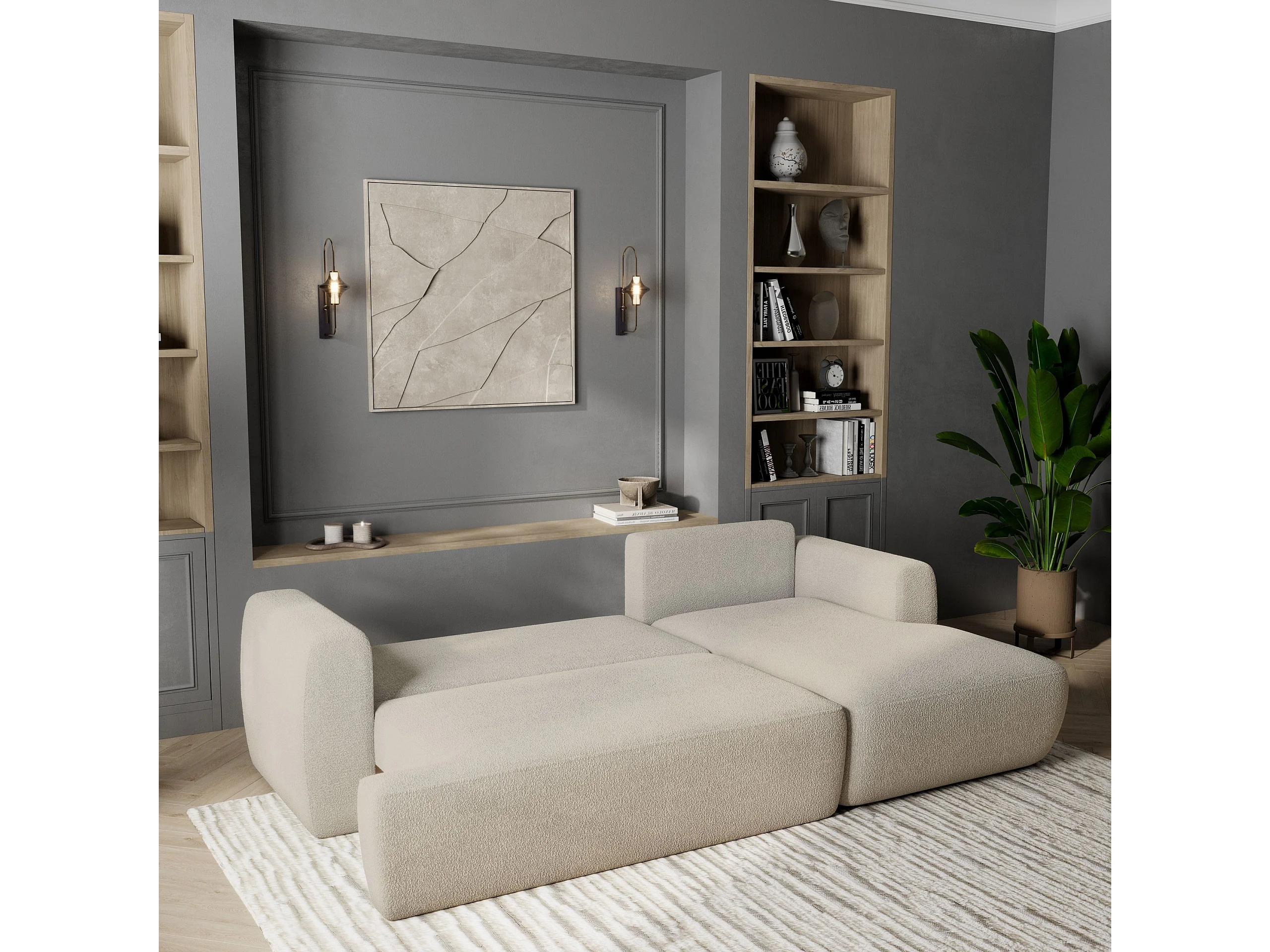 Canapé d'angle SENTI Crème en bouclé avec fonction de couchage