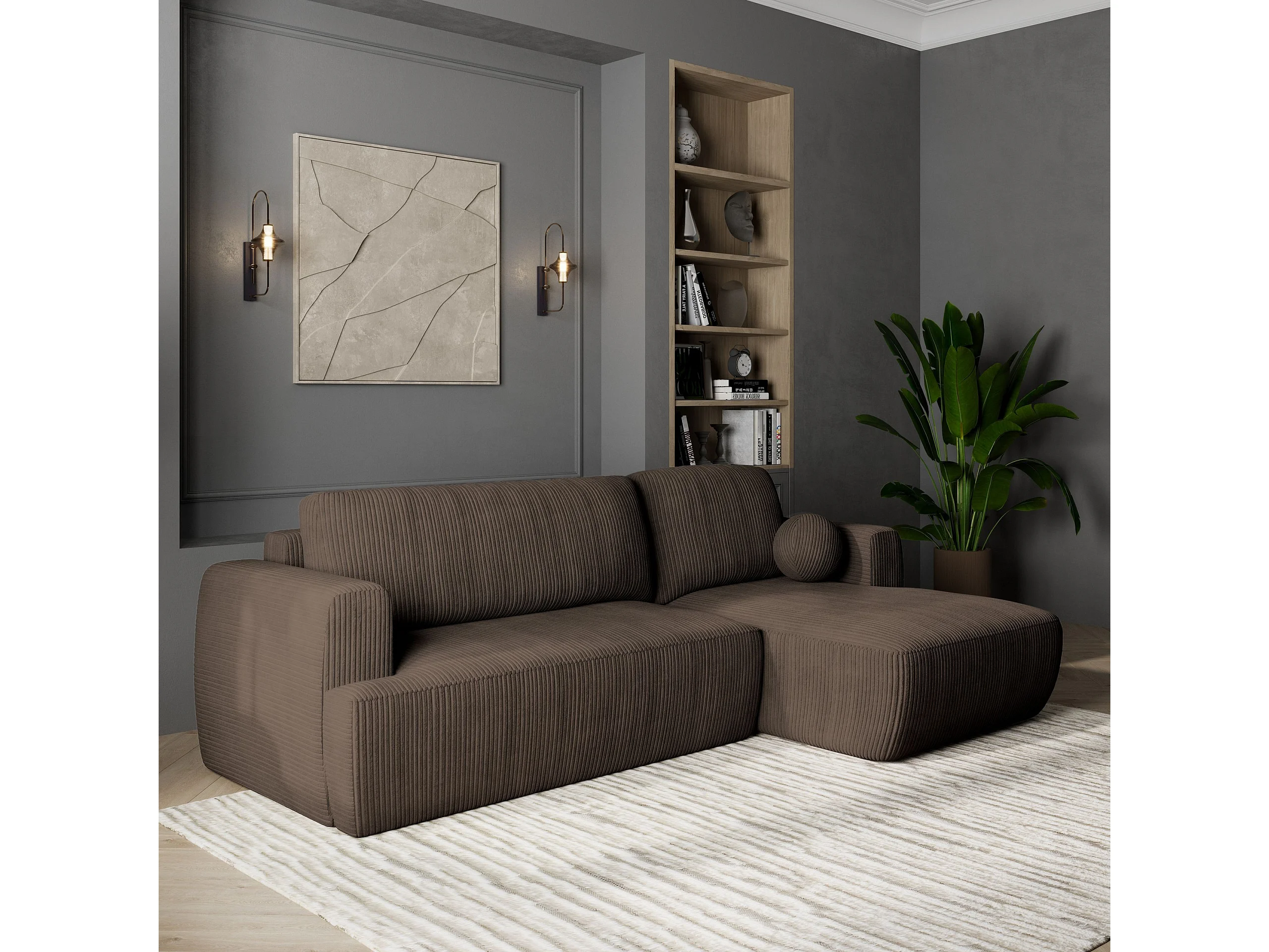 Canapé d'angle SENTI Marron en velours côtelé avec fonction de couchage