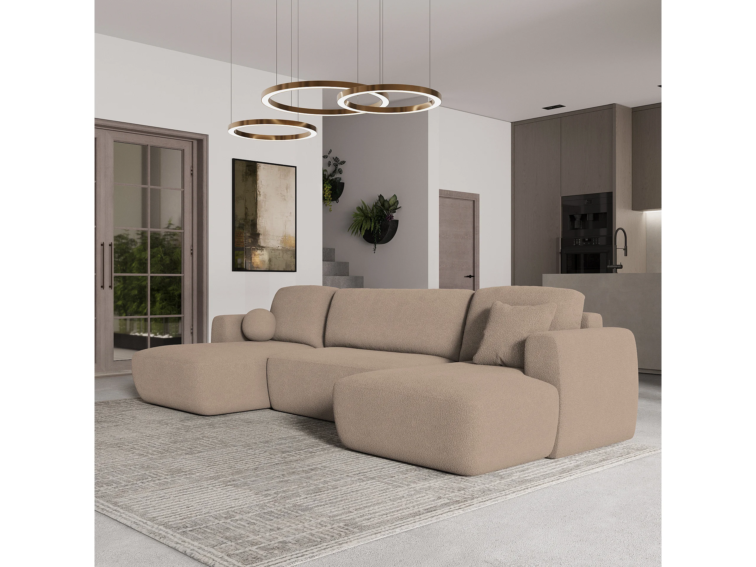 Canapé d'angle SENTUM Beige en bouclé avec fonction de couchage