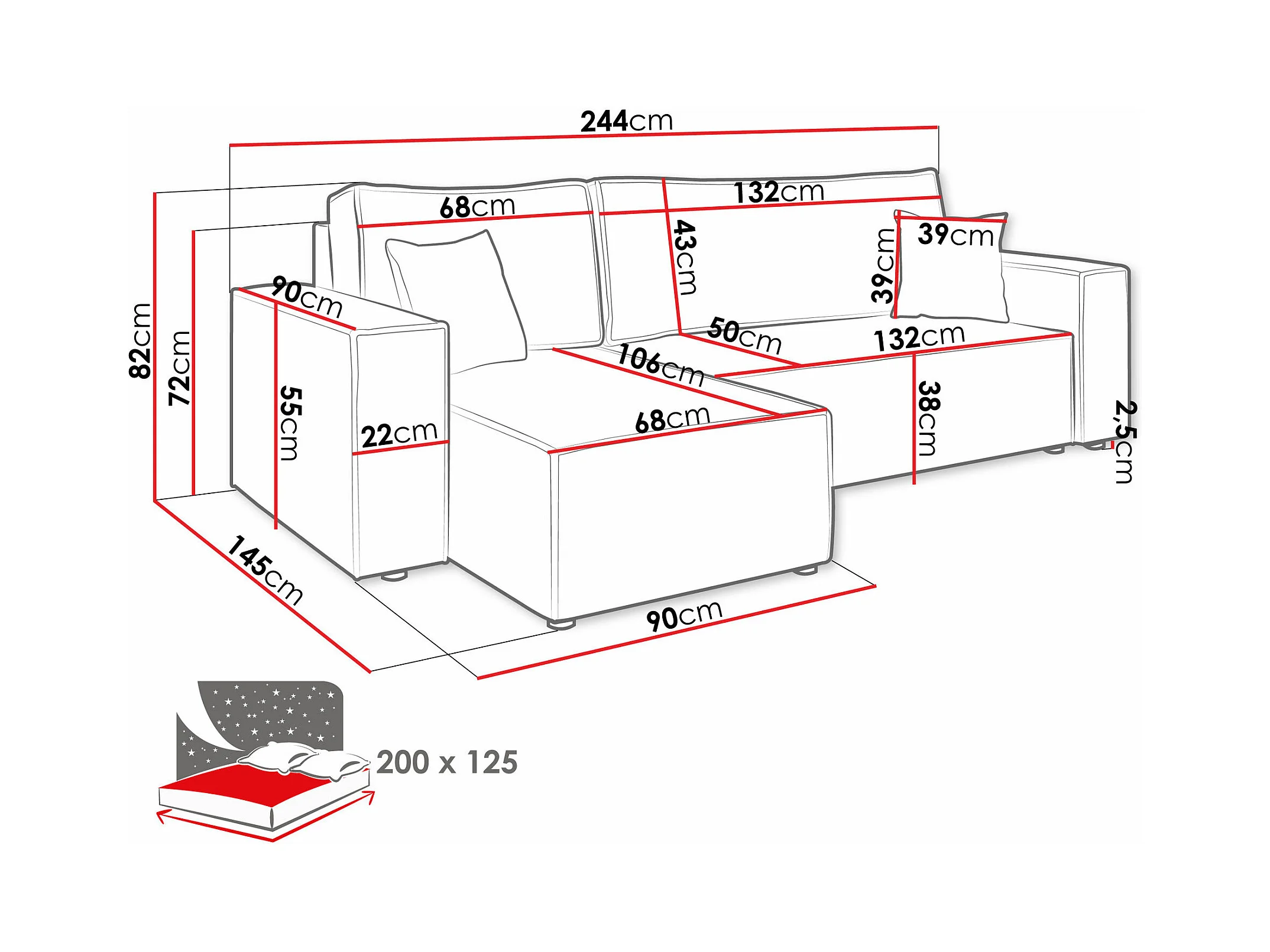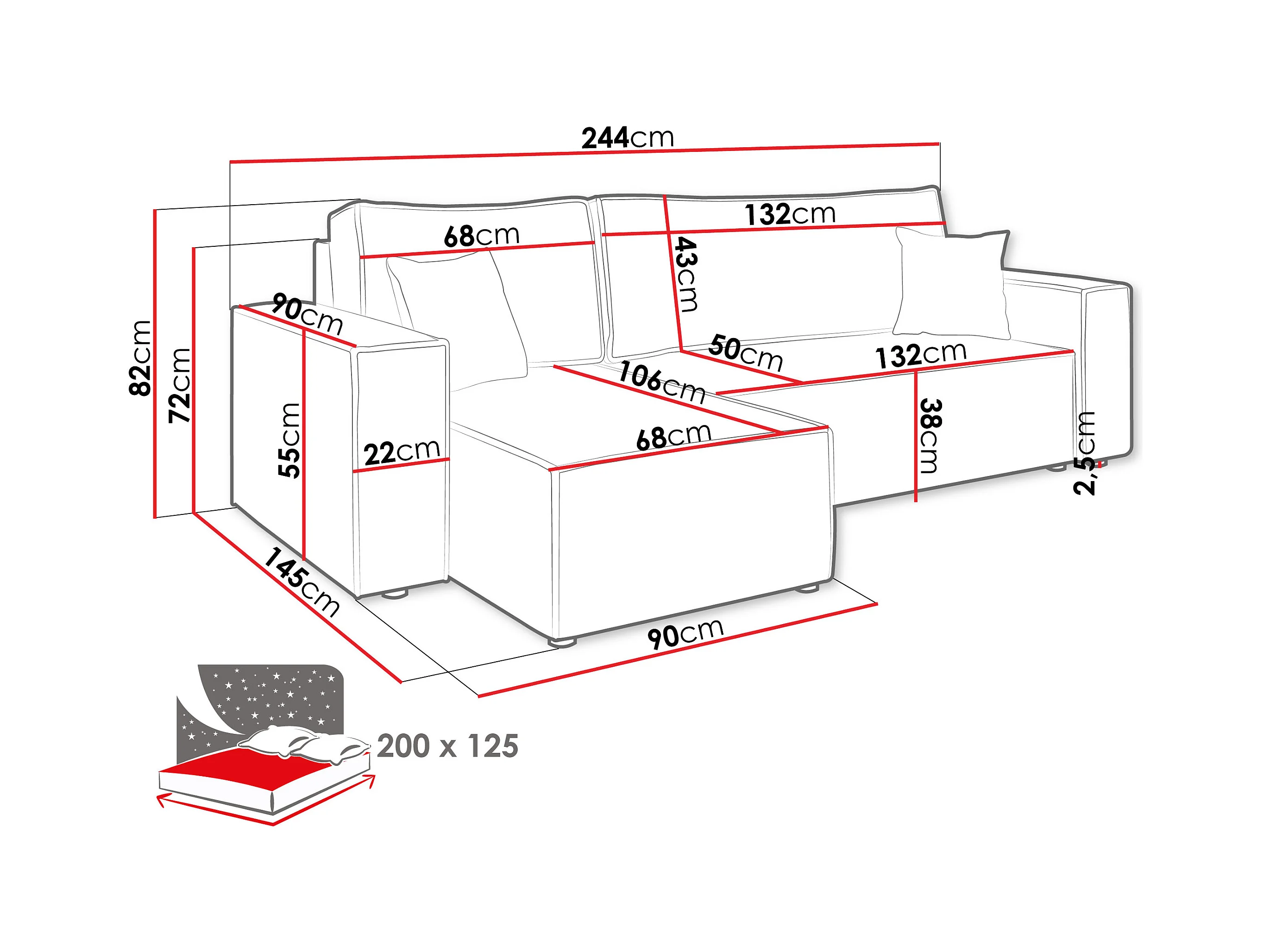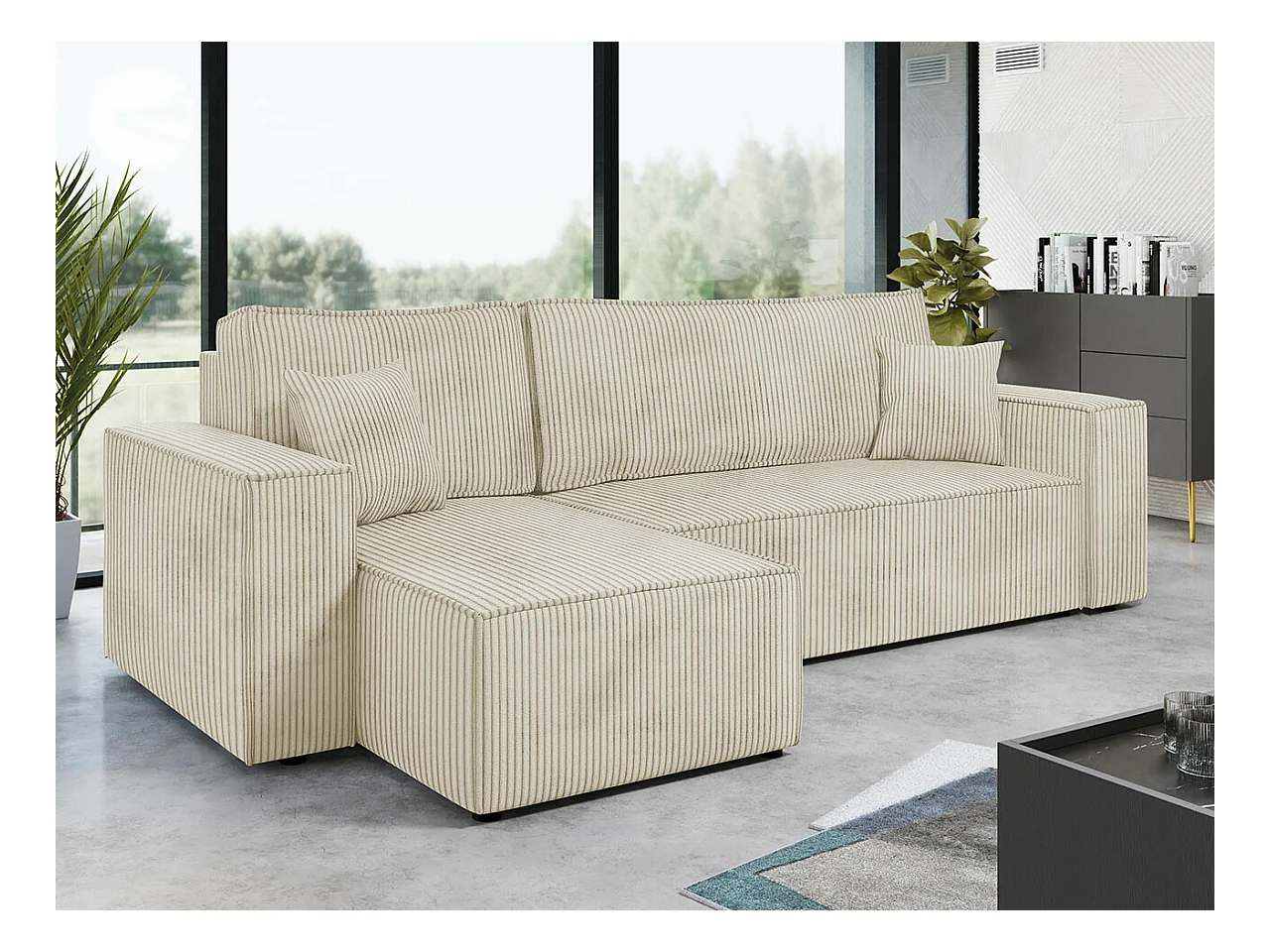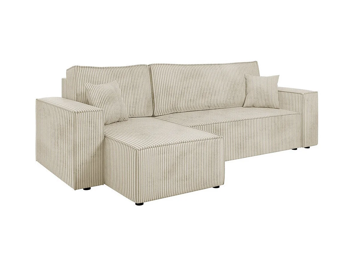 Canapé d'angle Shelton 100, Brun clair, Fonction de couchage, Boîte de literie, 244x145cm