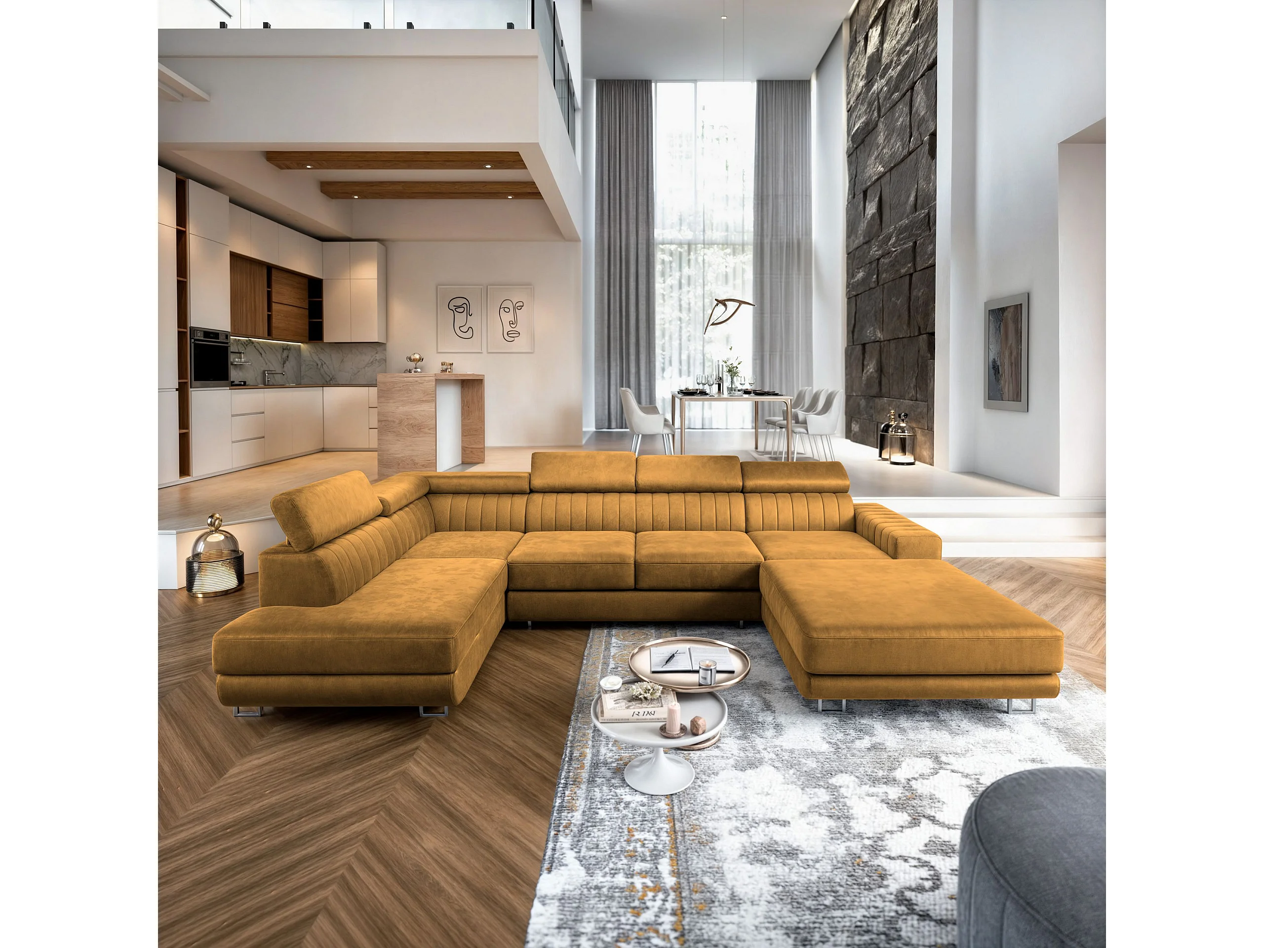 Canapé d'angle SIENA Jaune en velours avec fonction de couchage