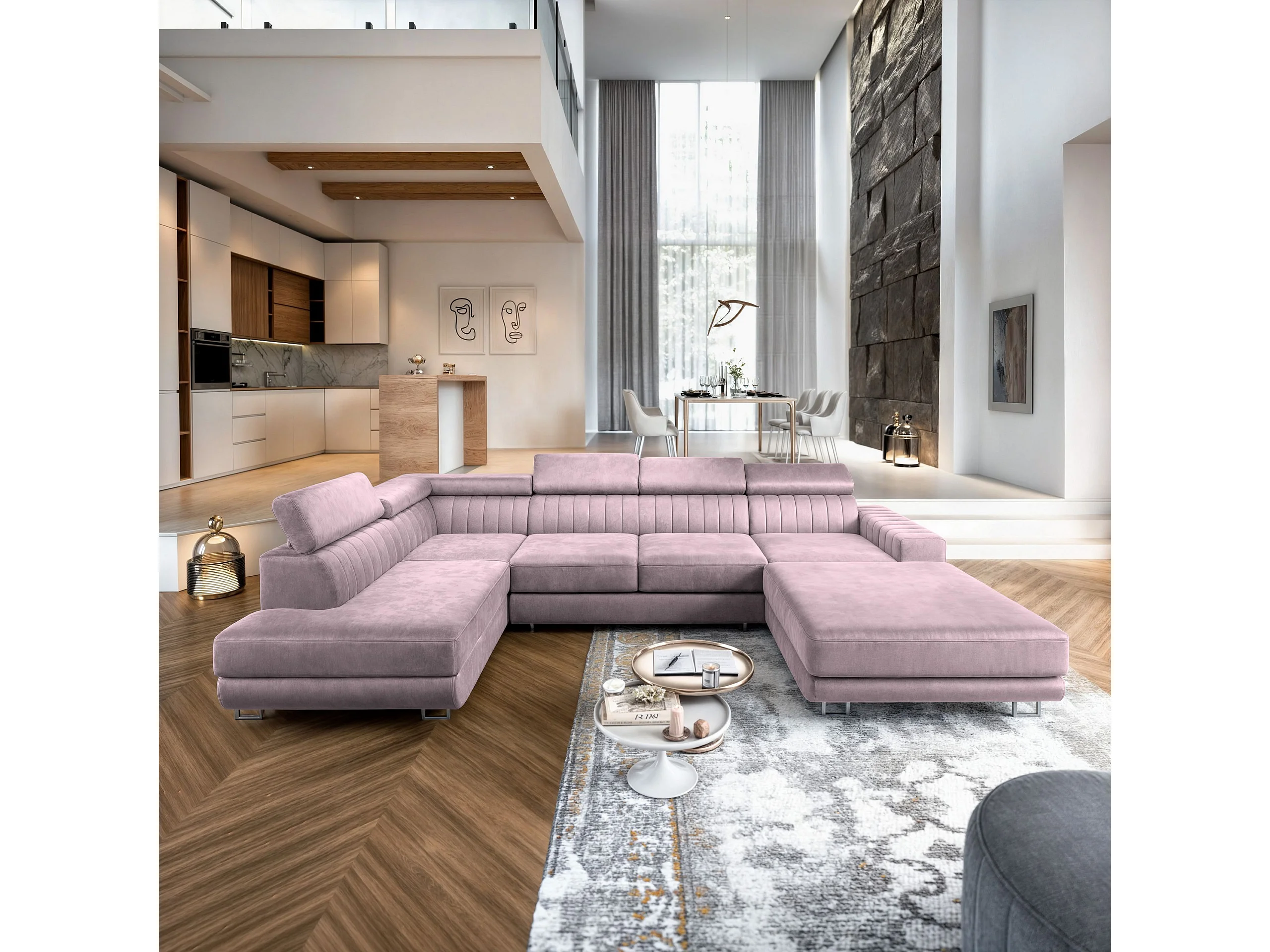 Canapé d'angle SIENA Parme en velours avec fonction de couchage