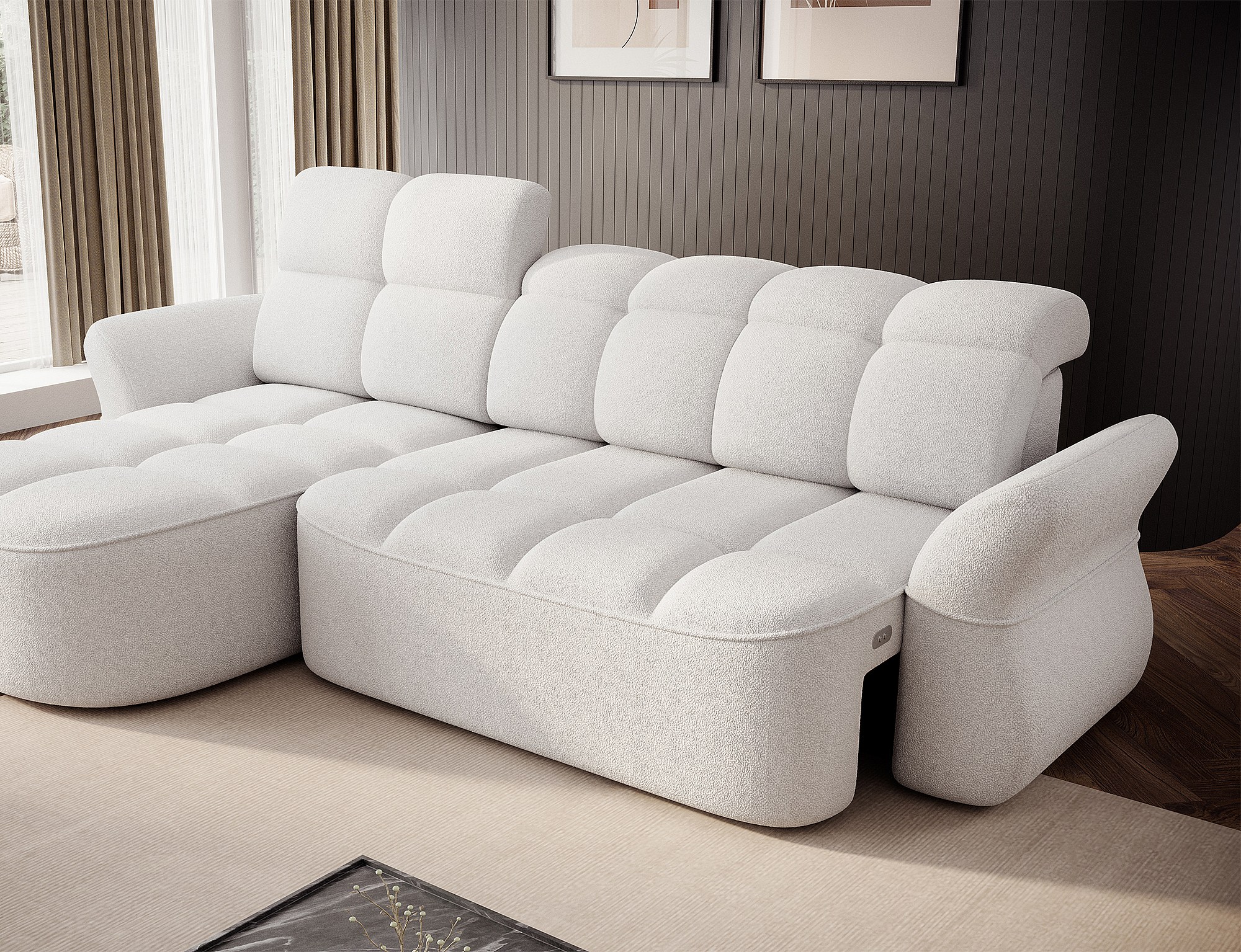 Canapé d’angle tissu CENTURY – Convertible et coffre-Blanc-angle gauche