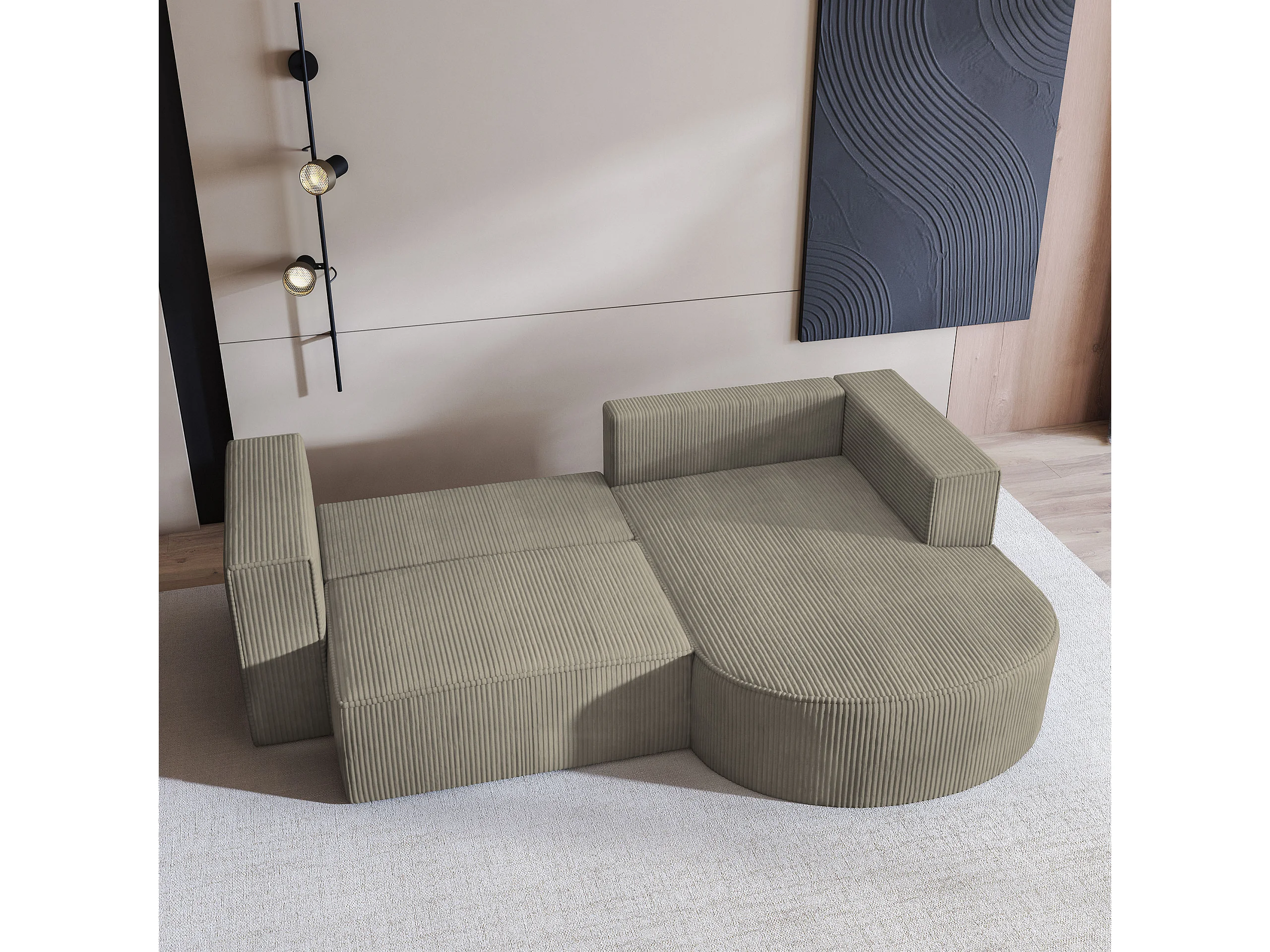 Canapé d'angle SORELA Beige en velours côtelé avec fonction de couchage