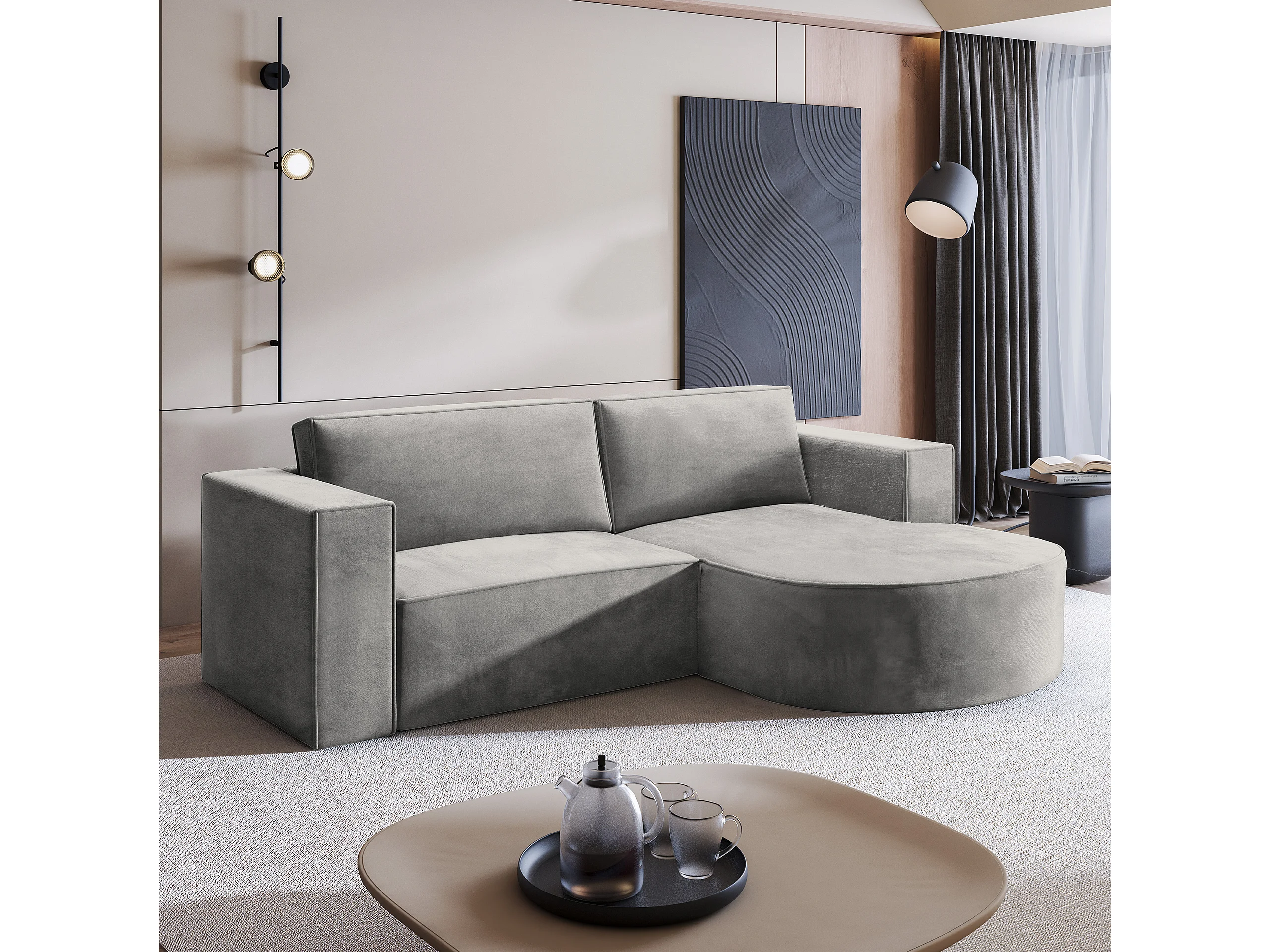 Canapé d'angle SORELA Gris clair en velours avec fonction de couchage