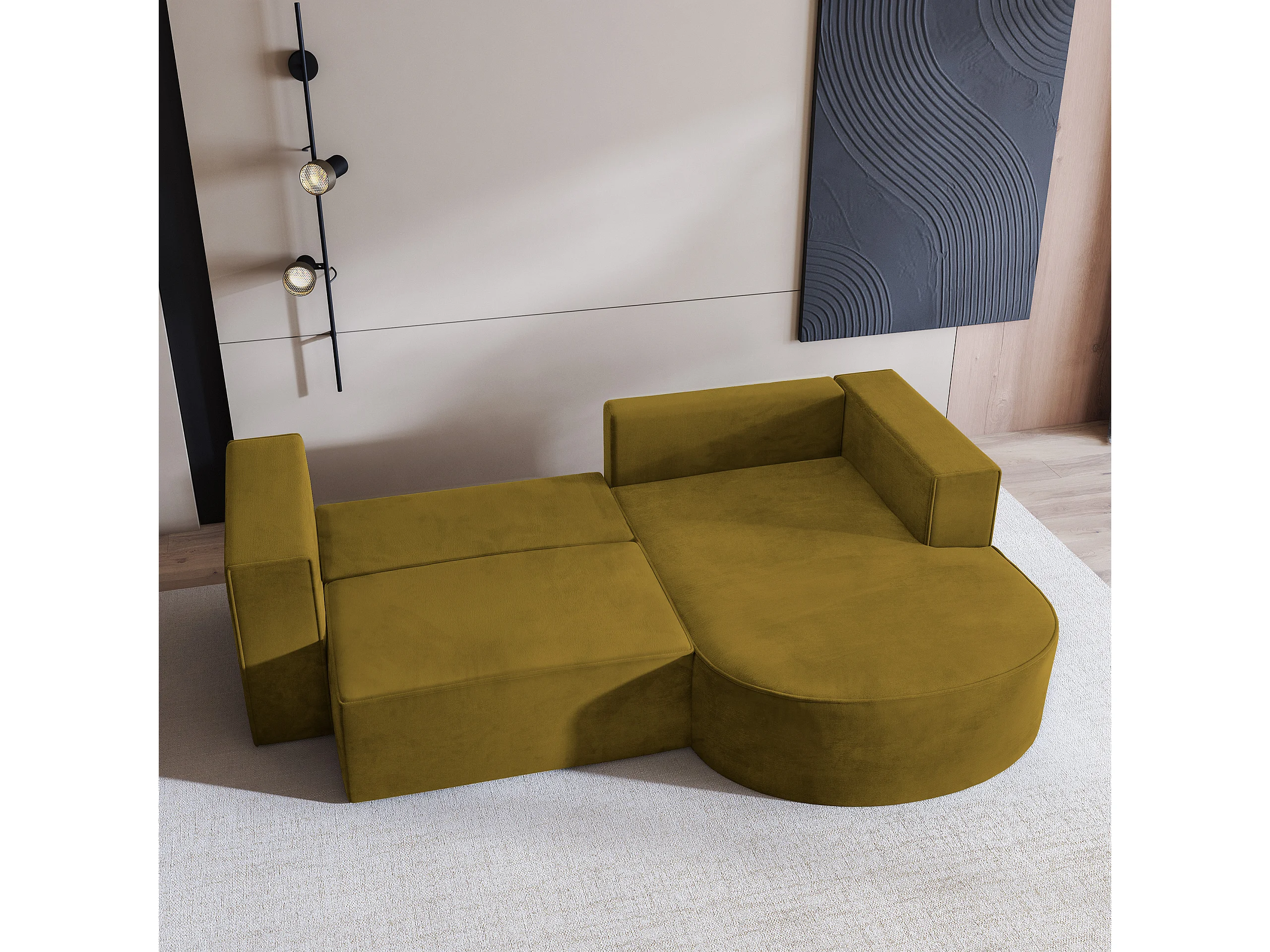 Canapé d'angle SORELA Jaune en velours avec fonction de couchage
