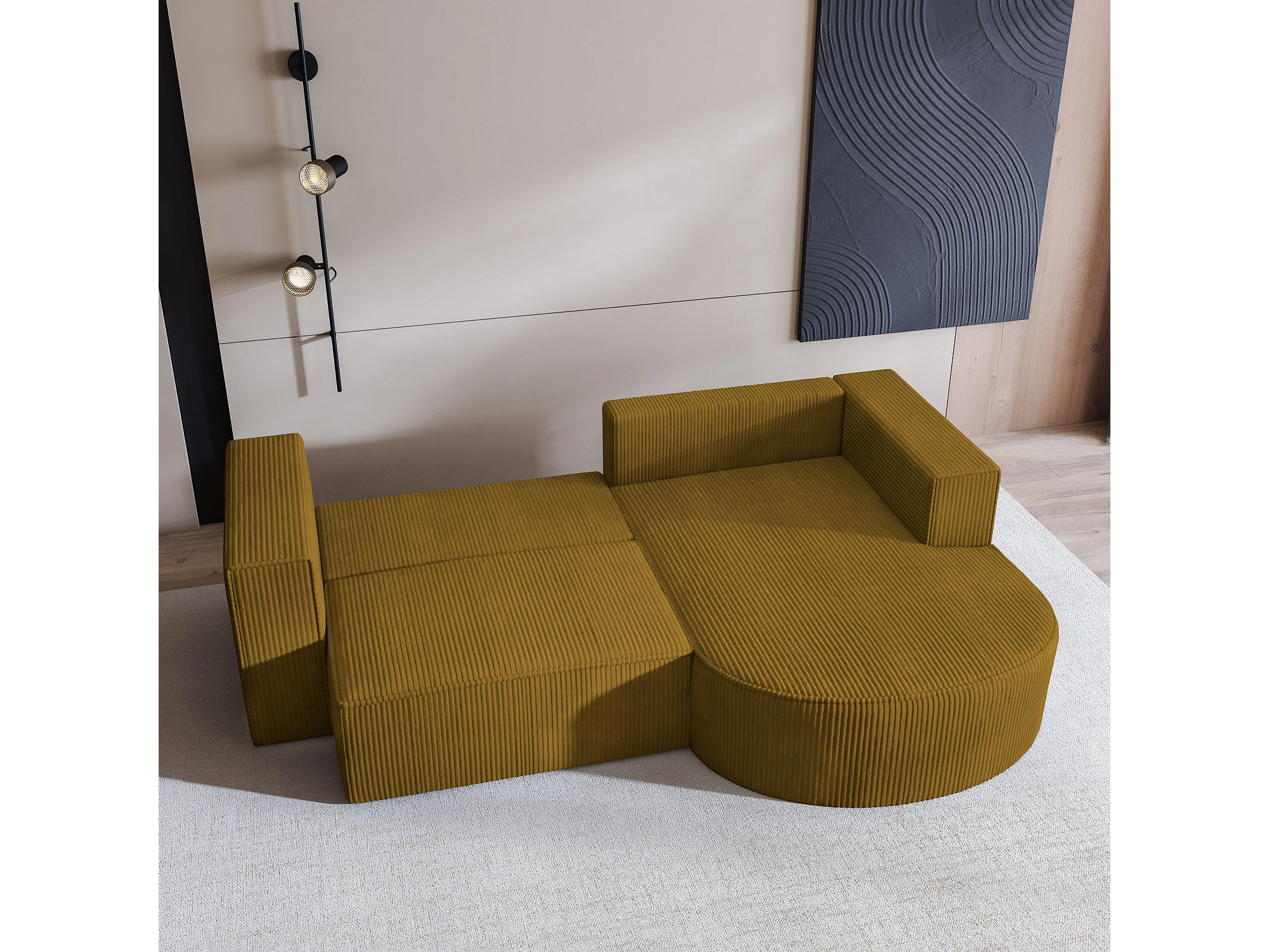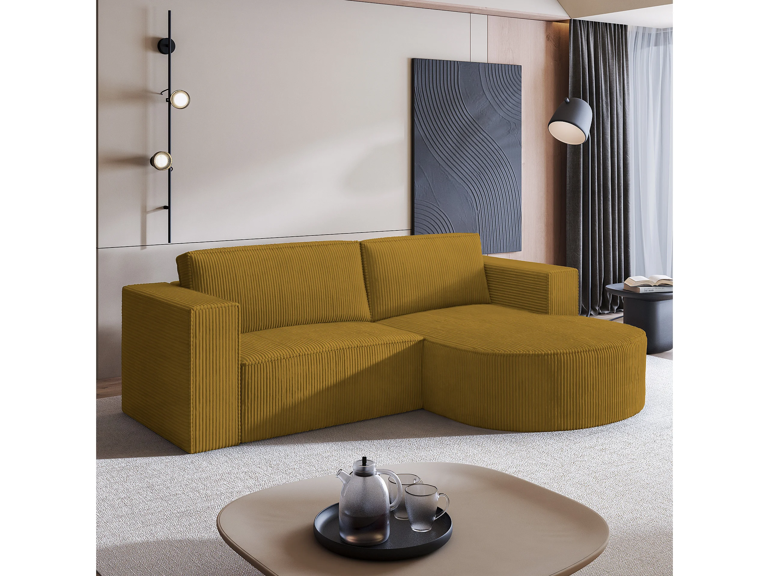 Canapé d'angle SORELA Jaune en velours côtelé avec fonction de couchage