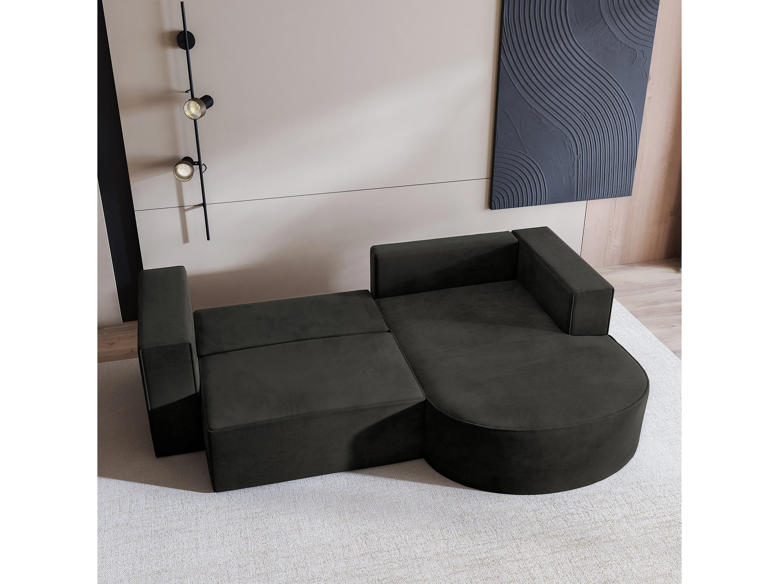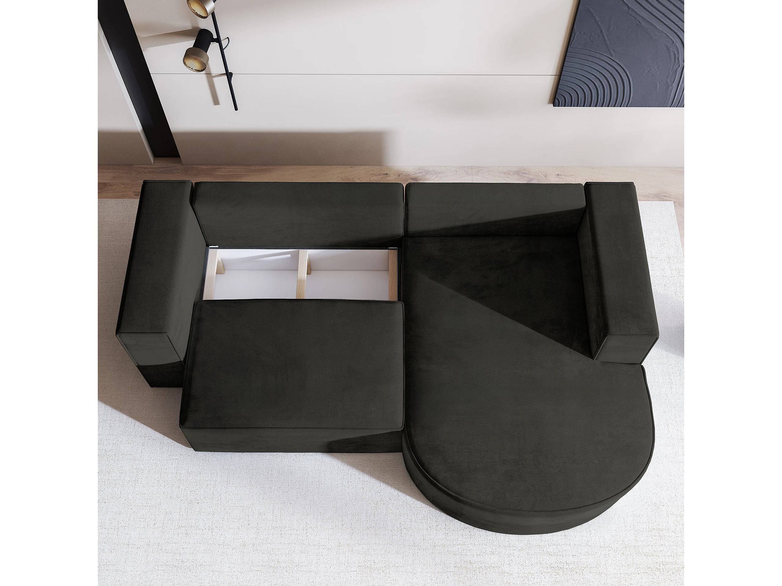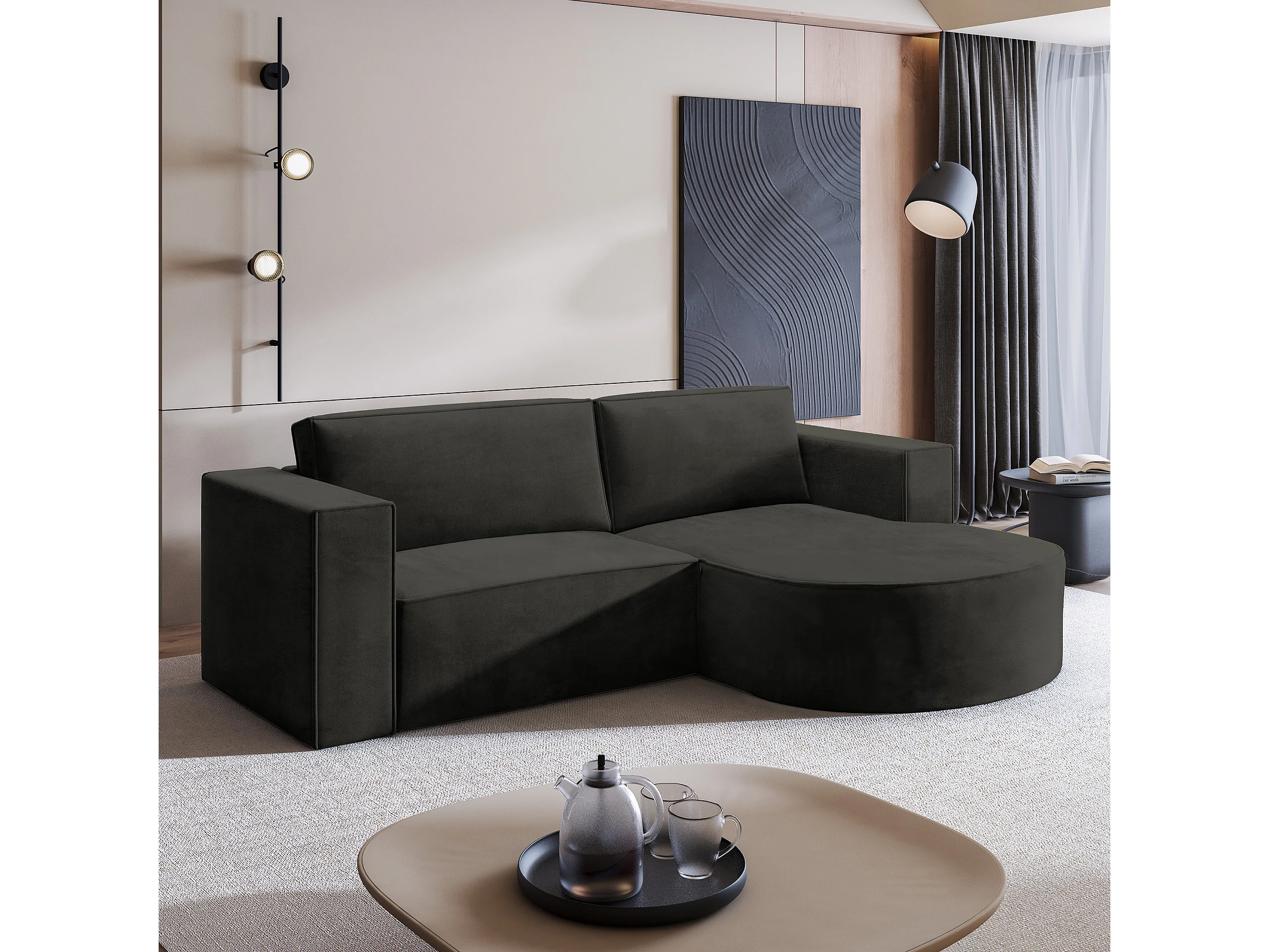 Canapé d'angle SORELA Noir en velours avec fonction de couchage