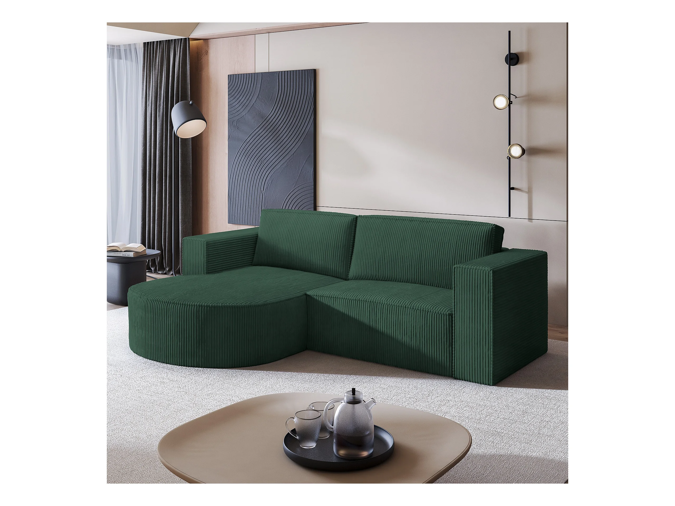 Canapé d'angle SORELA Vert en velours côtelé avec fonction de couchage