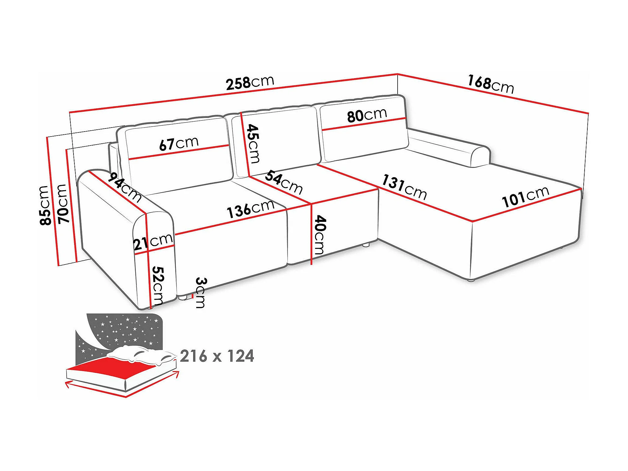 Canapé d'angle Stonecrest 105, Bleu, Disponible, 258x168x85cm