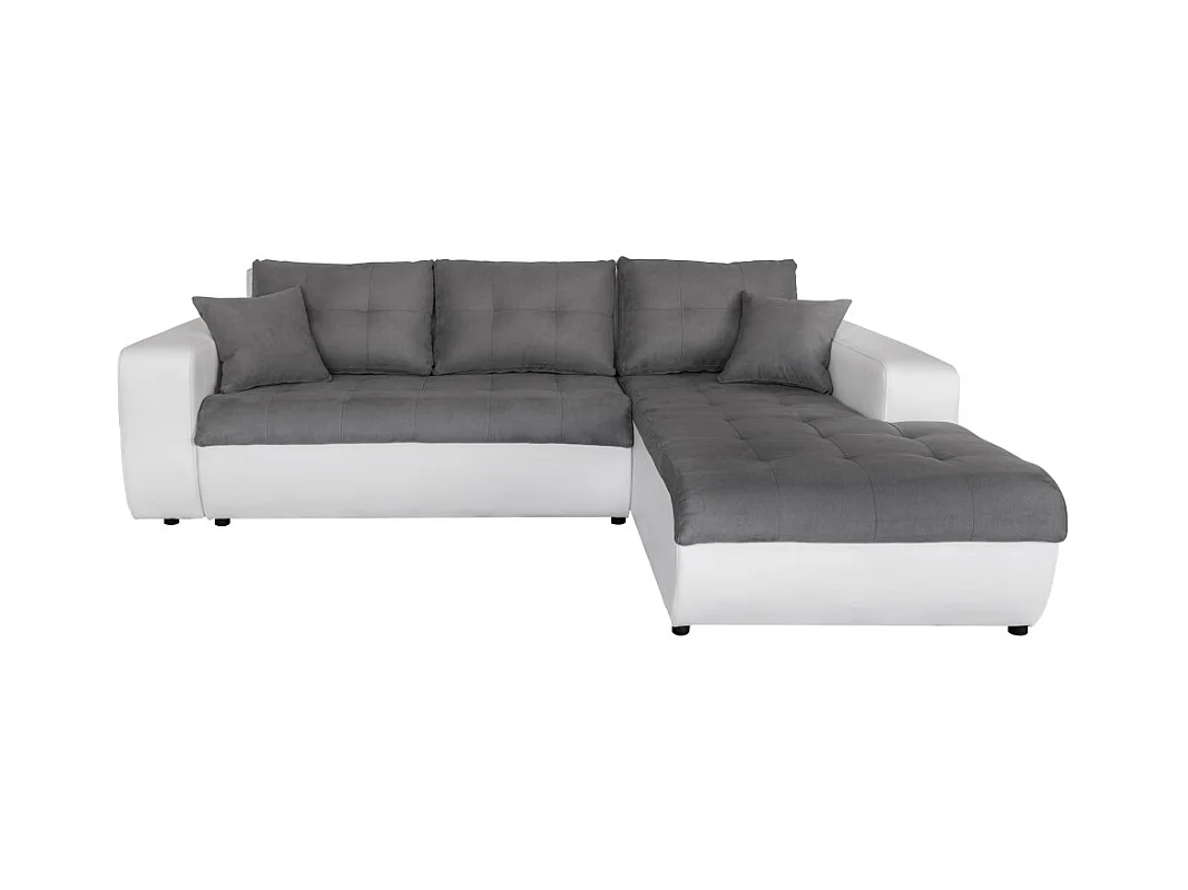 Canapé d'angle Droit 4 places Suzie Convertible en Simili et Microfibre - Blanc et Gris - L246 x 188 x 80cm - Loungitude