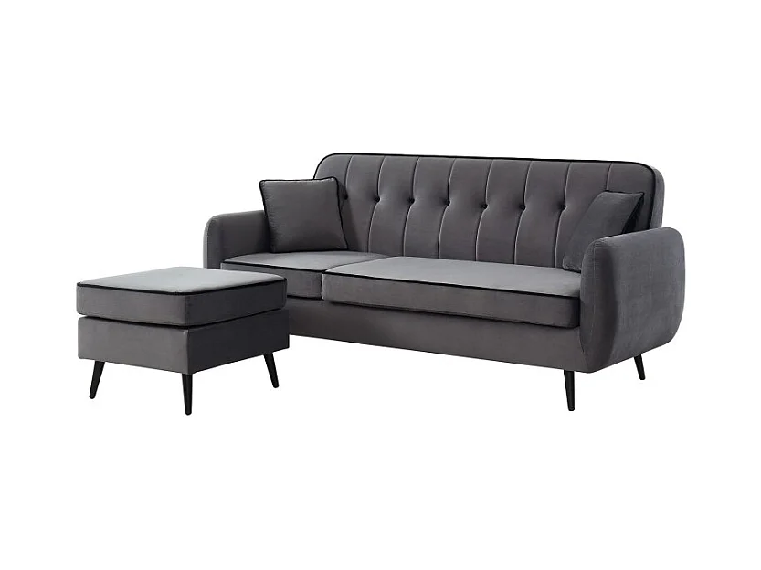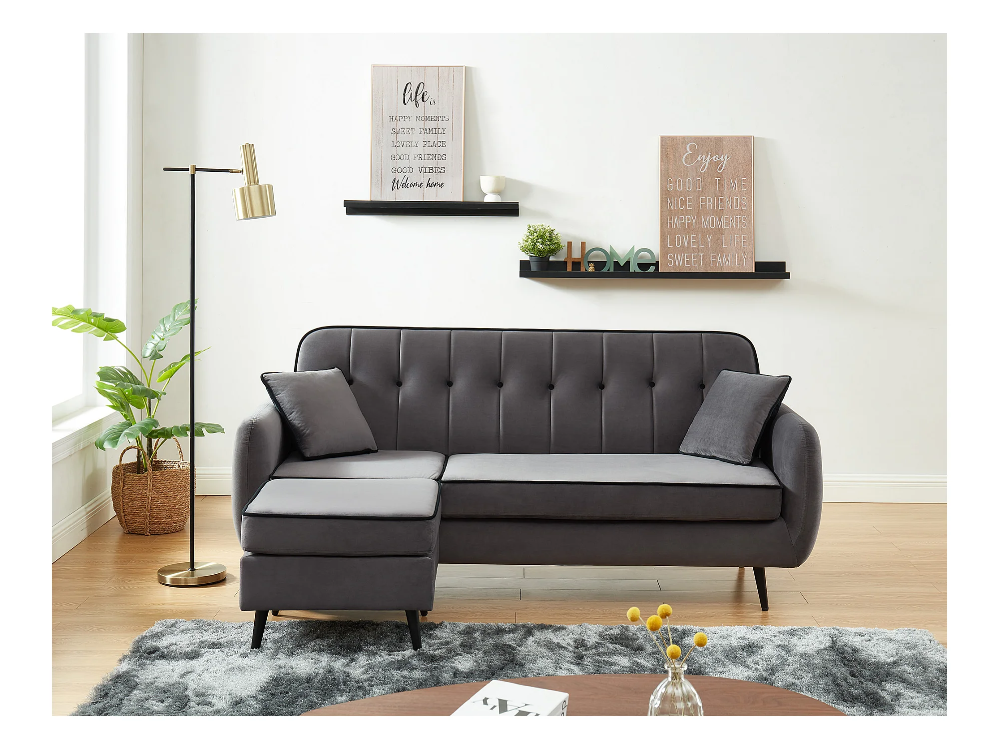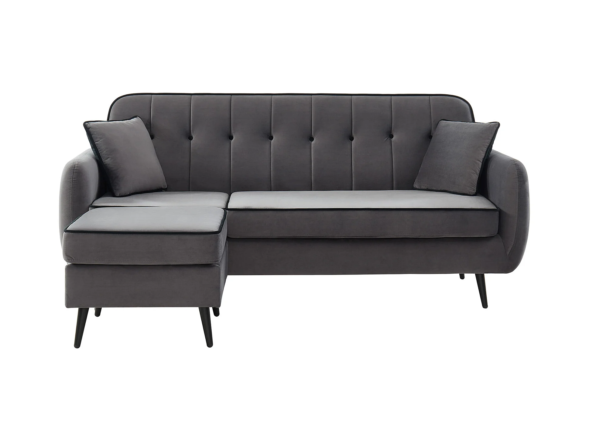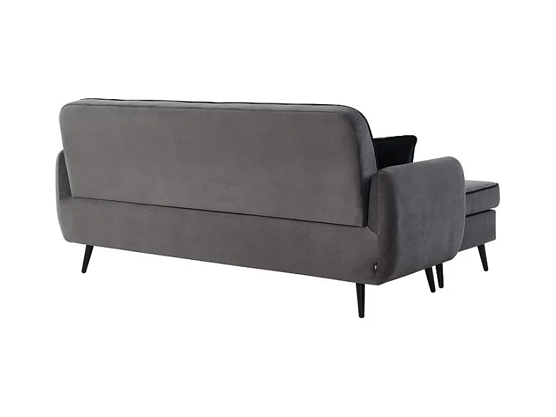 Canapé d'angle SWEETY en velours gris avec pieds en métal noir 4places et 2 coussins inclus
