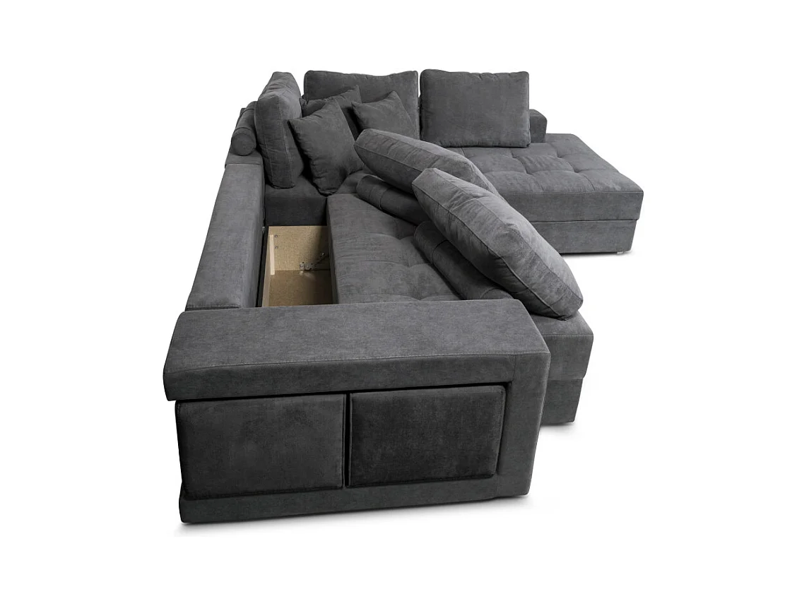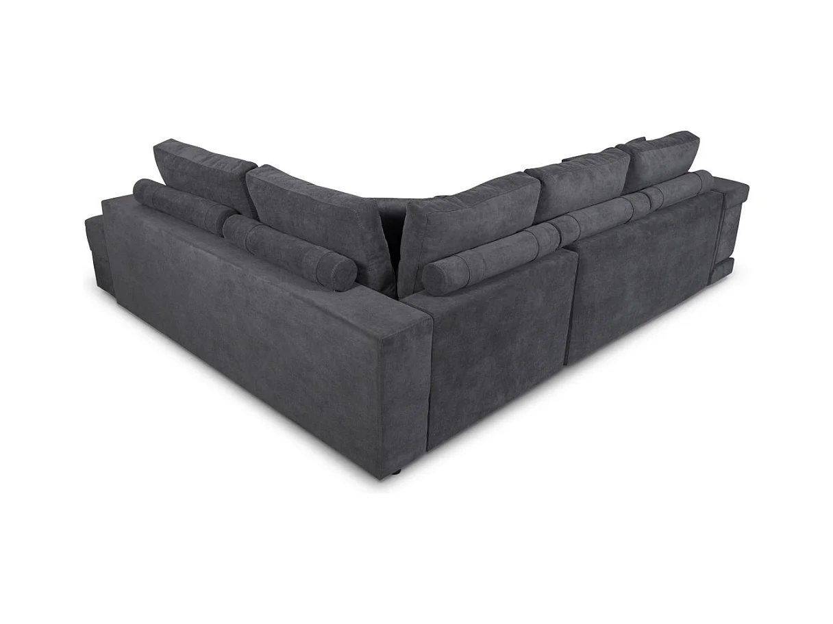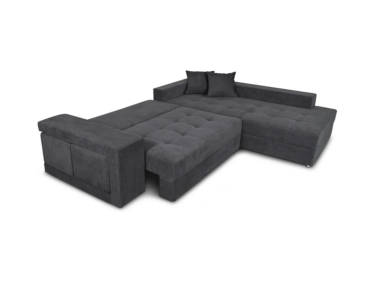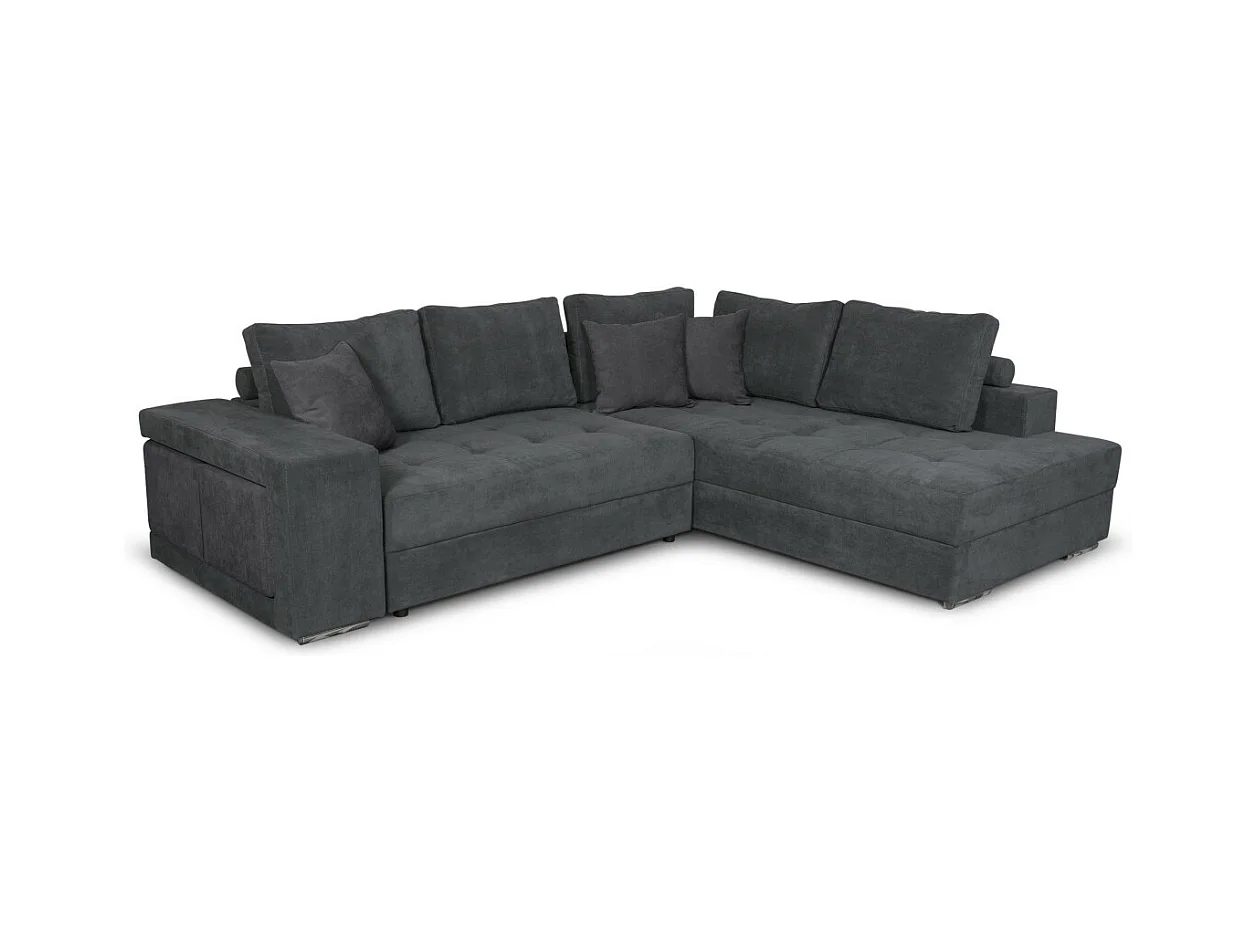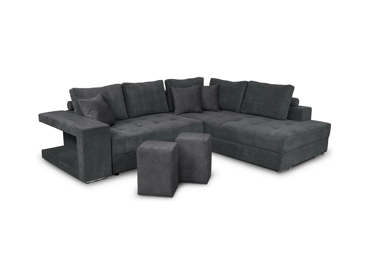 Canapé d'angle droit Tamia convertible avec coffre et 2 poufs en tissu - Gris anthracite - L288 x P224 x H87cm - Loungitude