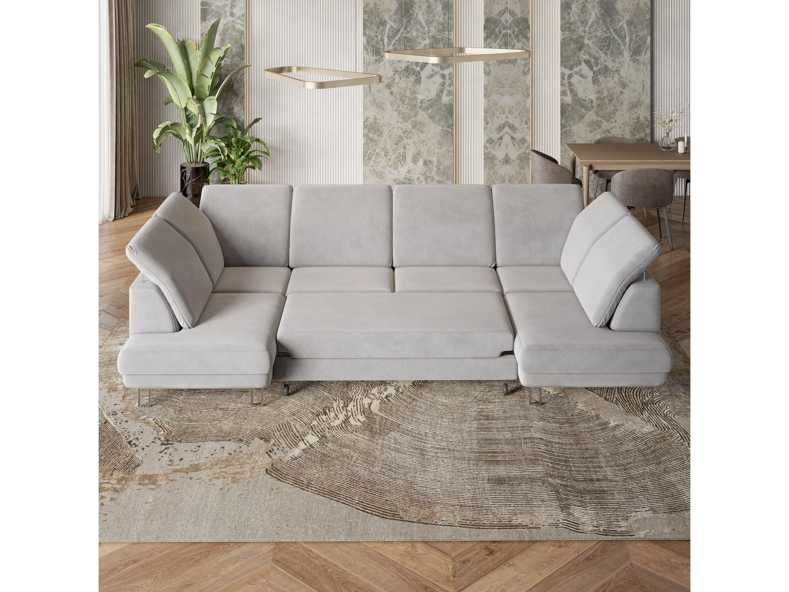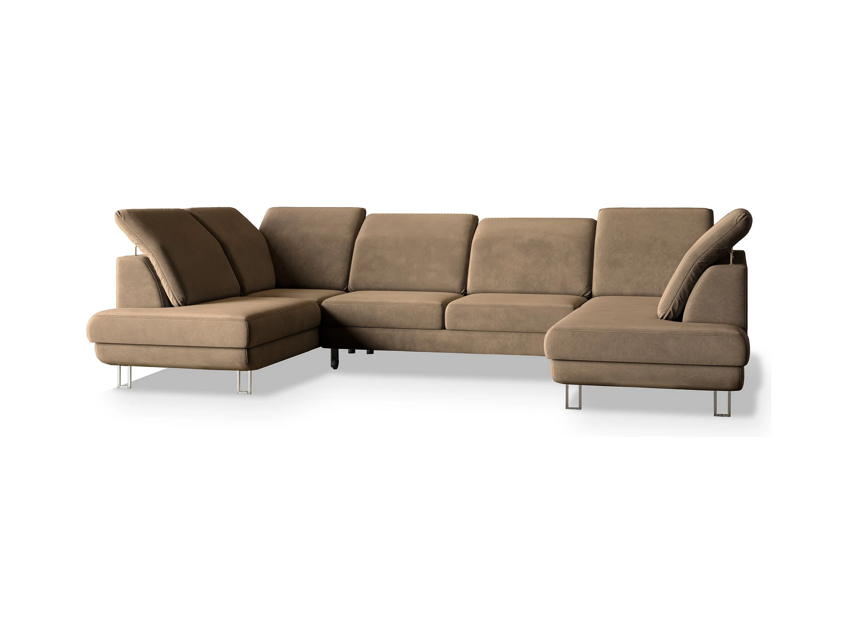 Canapé d'angle TERAMO Beige en velours avec fonction de couchage