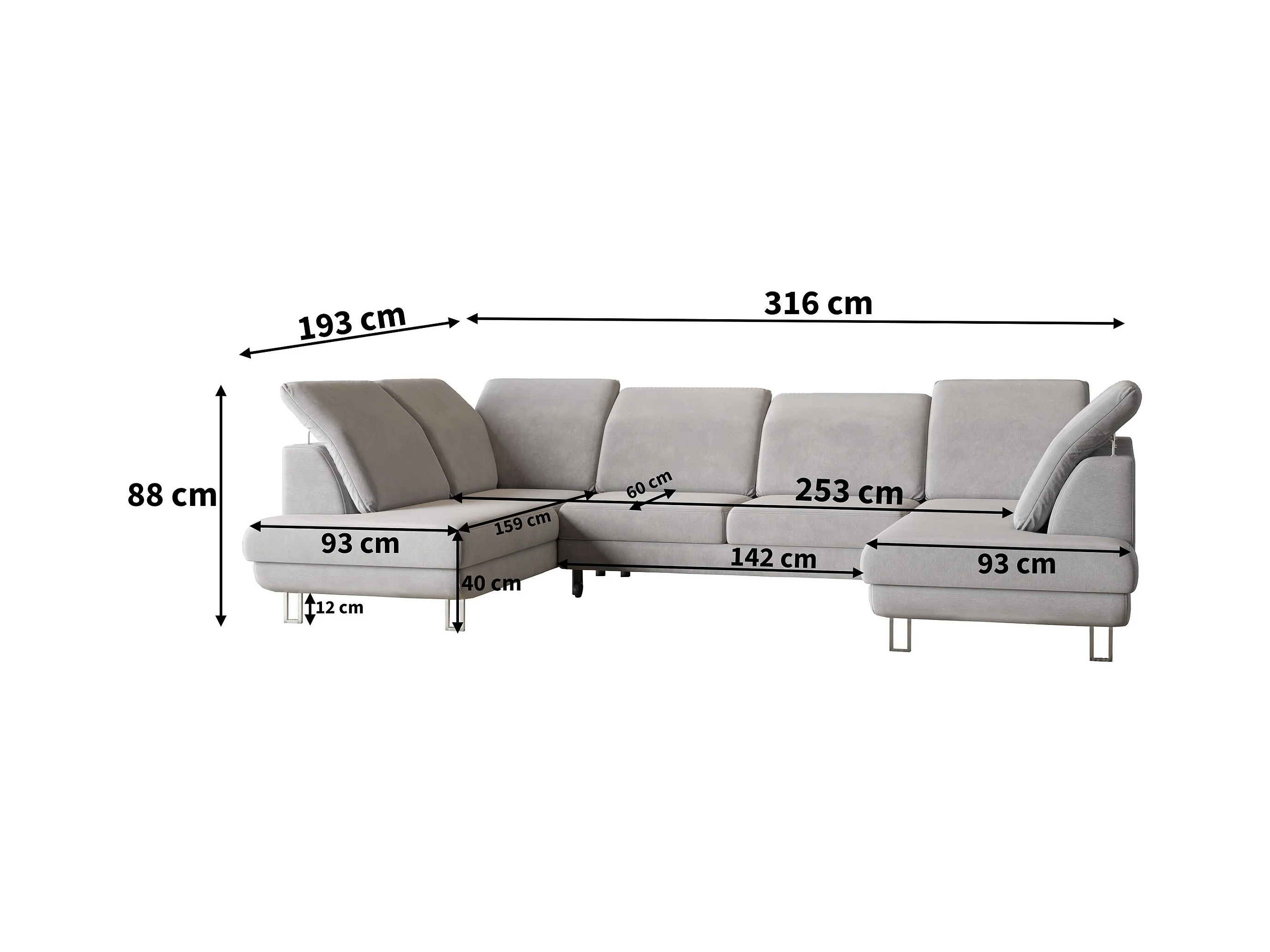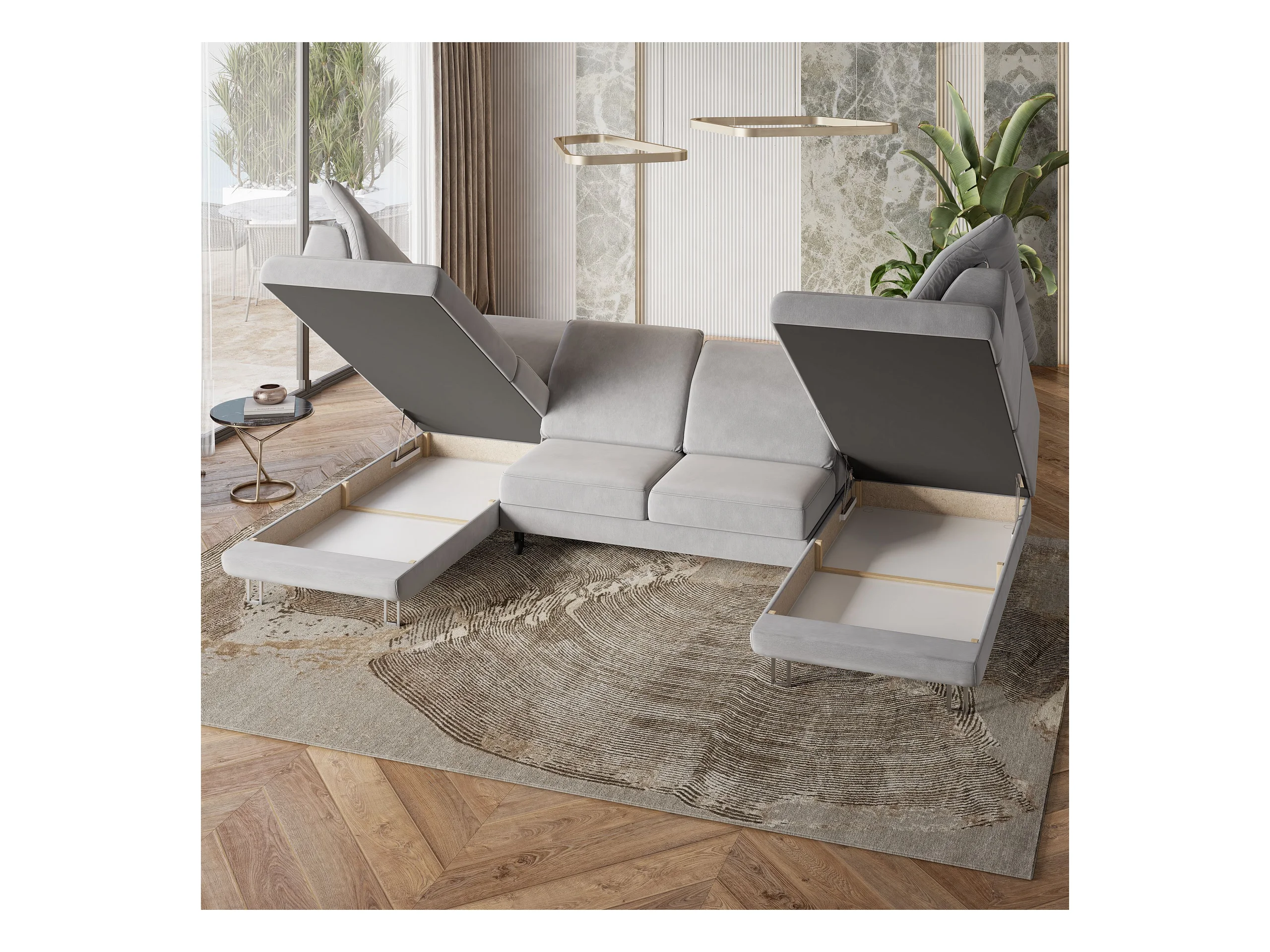 Canapé d'angle TERAMO Gris clair en velours avec fonction de couchage