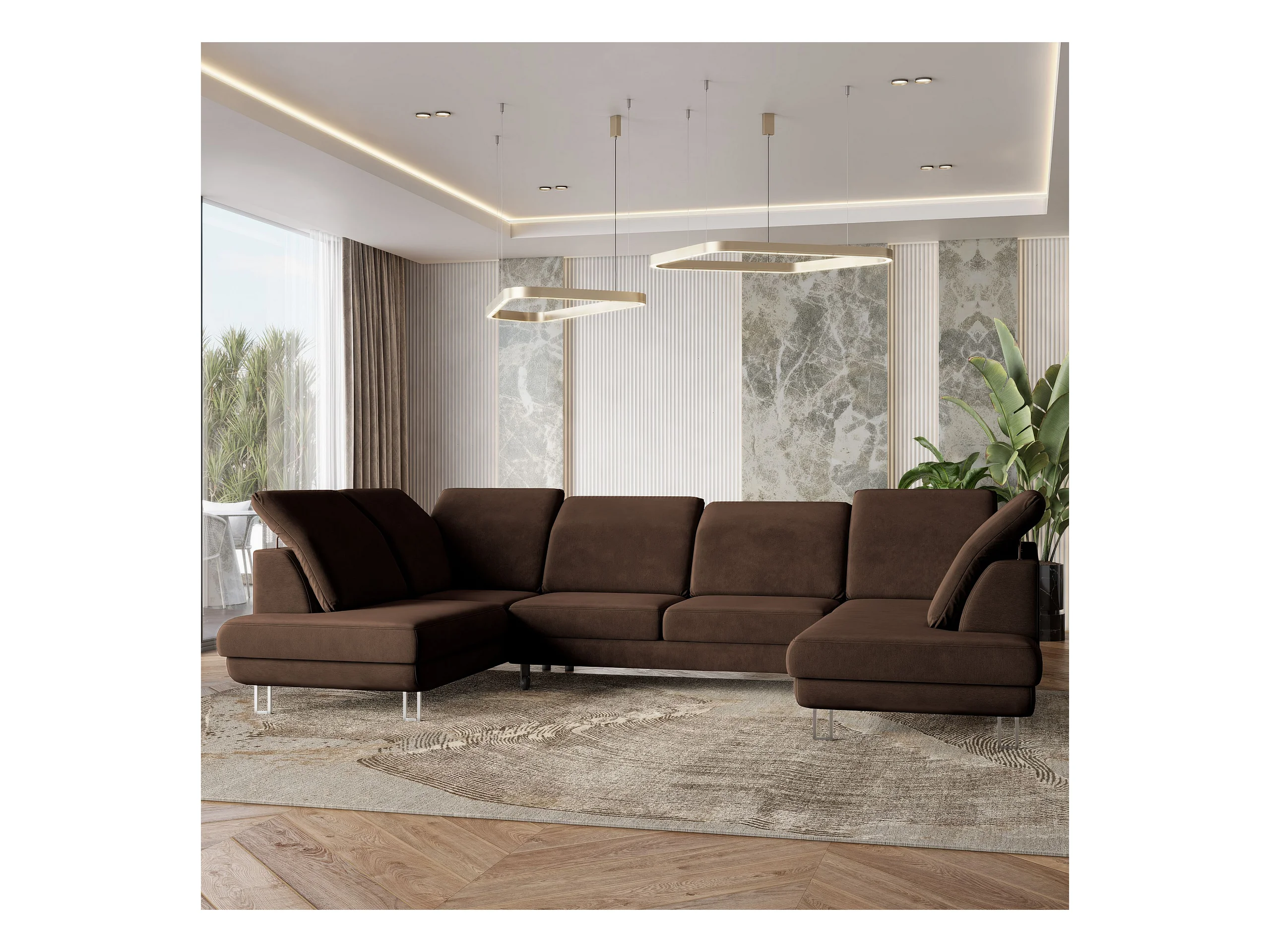 Canapé d'angle TERAMO Marron en velours avec fonction de couchage