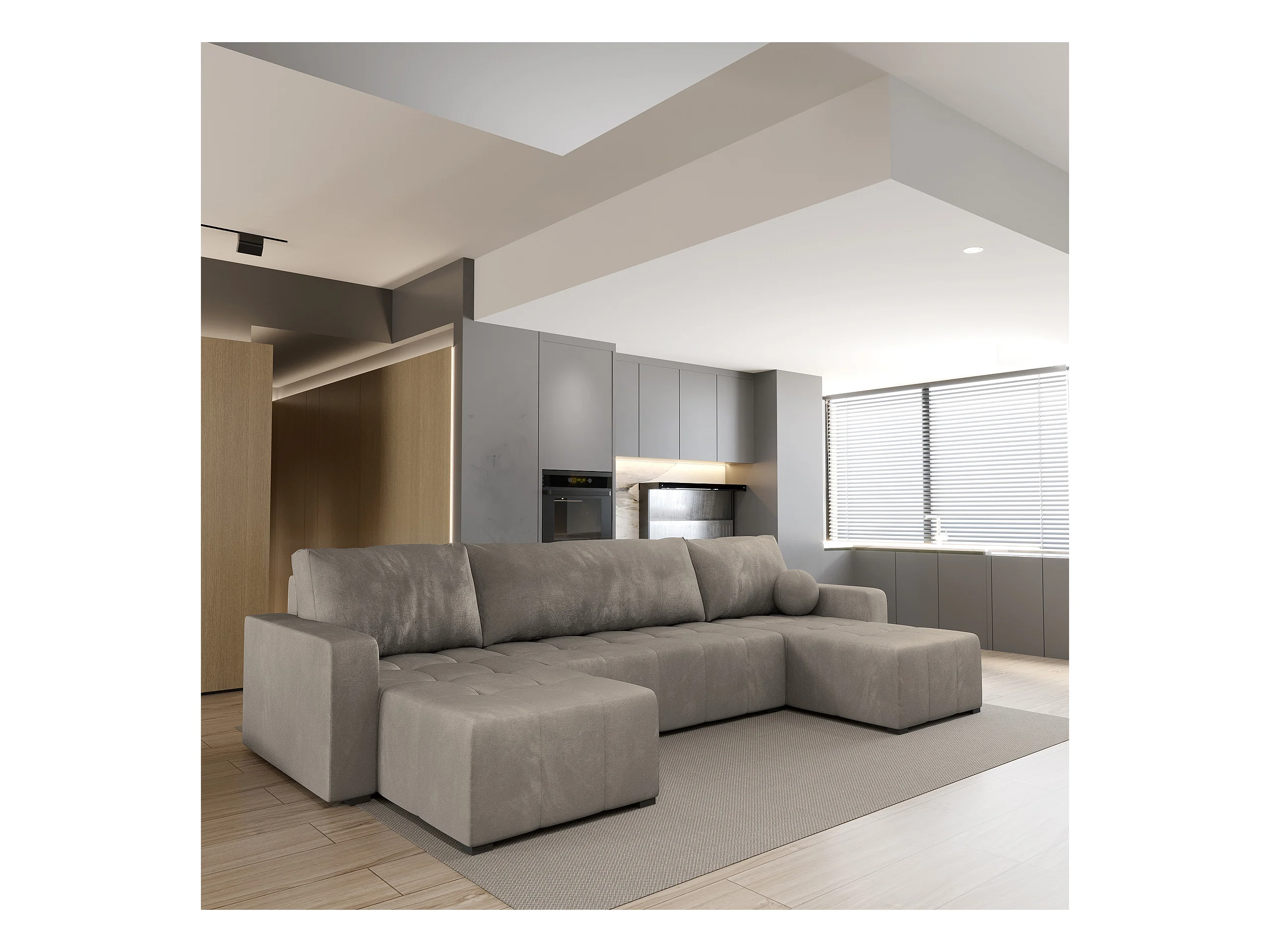 Canapé d'angle TOLARI Beige en peluche avec fonction de couchage
