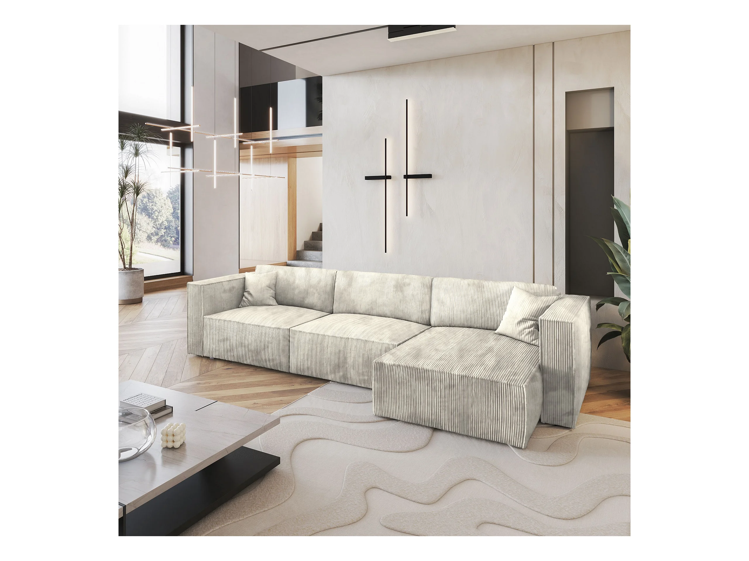 Canapé d'angle TOLMO Crème en velours côtelé avec fonction de couchage
