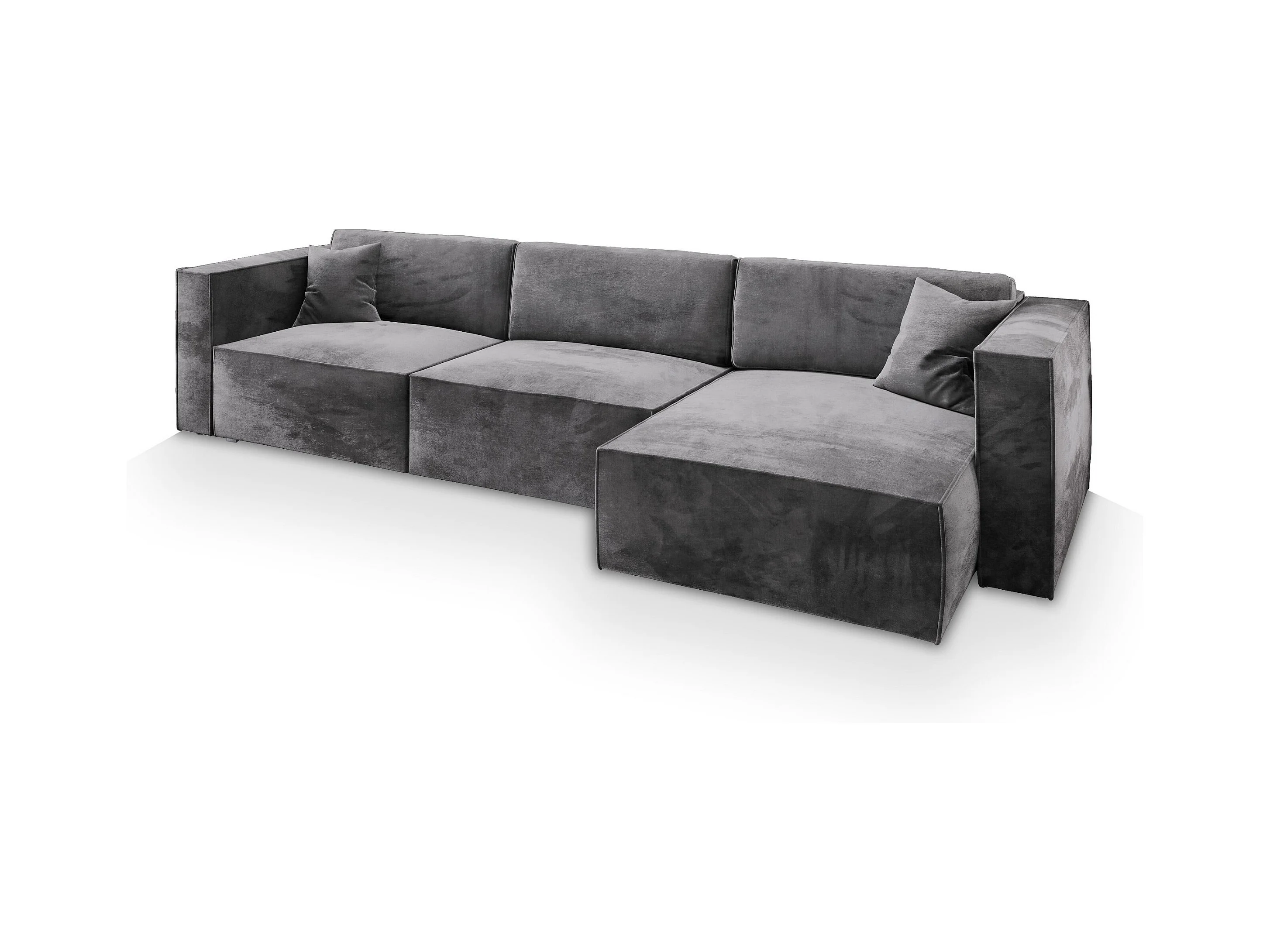 Canapé d'angle TOLMO Gris en velours avec fonction de couchage
